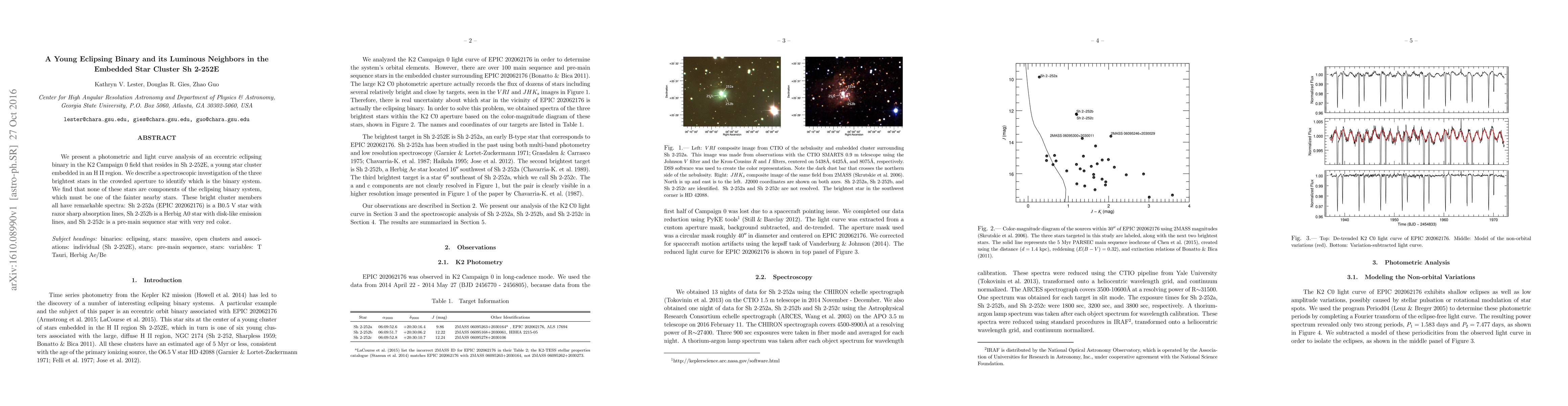 We present a photometric and light curve analysis of an eccentric eclipsing binary in the K2 Campaign 0 field that resides in Sh 2-252E, a young star cluster embedded in an H II region. We describe a spectroscopic investigation of the three brightest stars in the crowded aperture to identify which is the binary system. We find that none of these stars are components of the eclipsing binary system, which must be one of the fainter nearby stars. These bright cluster members all have remarkable spectra: Sh 2-252a (EPIC 202062176) is a B0.5 V star with razor sharp absorption lines, Sh 2-252b is a Herbig A0 star with disk-like emission lines, and Sh 2-252c is a pre-main sequence star with very red color.