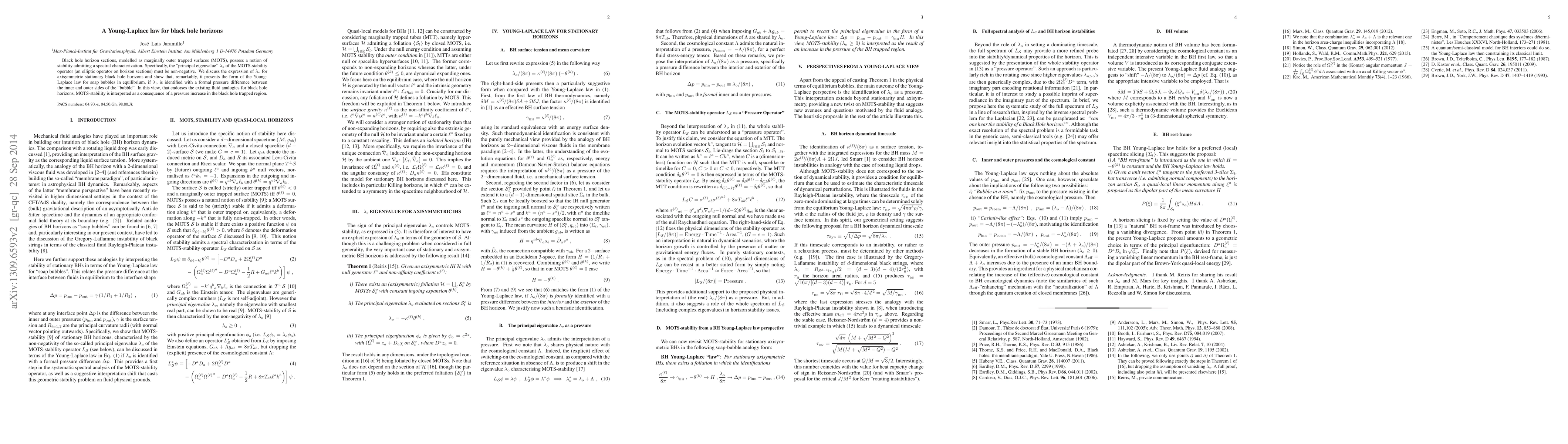 This paper explores the stability of black hole horizons modeled as marginally outer trapped surfaces (MOTS) and finds that the principal eigenvalue of the MOTS-stability operator follows a form analogous to the Young-Laplace law for soap bubbles, suggesting a pressure difference interpretation that reinforces fluid analogies for black hole horizons.