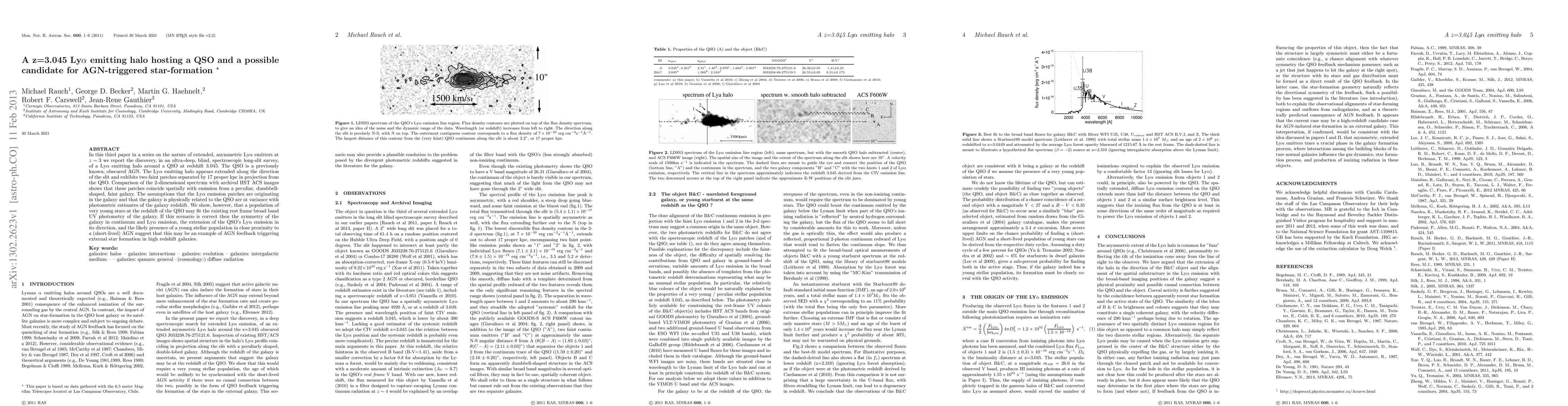 This paper reports the discovery of a Lyman alpha emitting halo around a QSO at redshift 3.045, suggesting AGN feedback may trigger star formation in high-redshift galaxies. The halo exhibits two faint patches coinciding with a peculiar, dumbbell-shaped galaxy, hinting at a young stellar population possibly linked to the QSO.