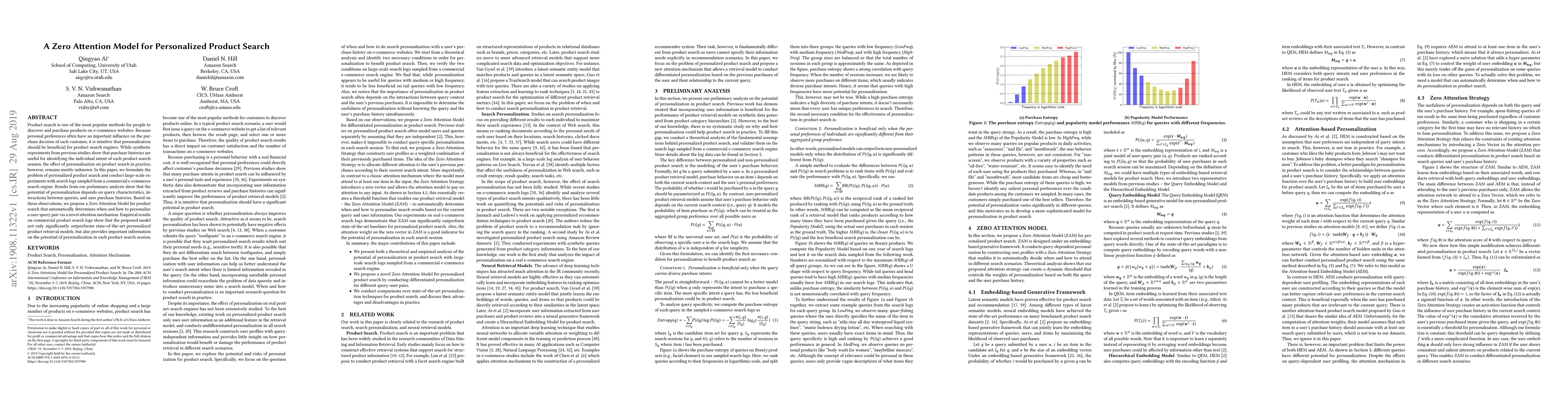 This paper proposes a Zero Attention Model for personalized product search, demonstrating that personalization effectiveness varies with query characteristics and user histories. The model outperforms existing methods and provides insights into the potential of personalization in e-commerce search.