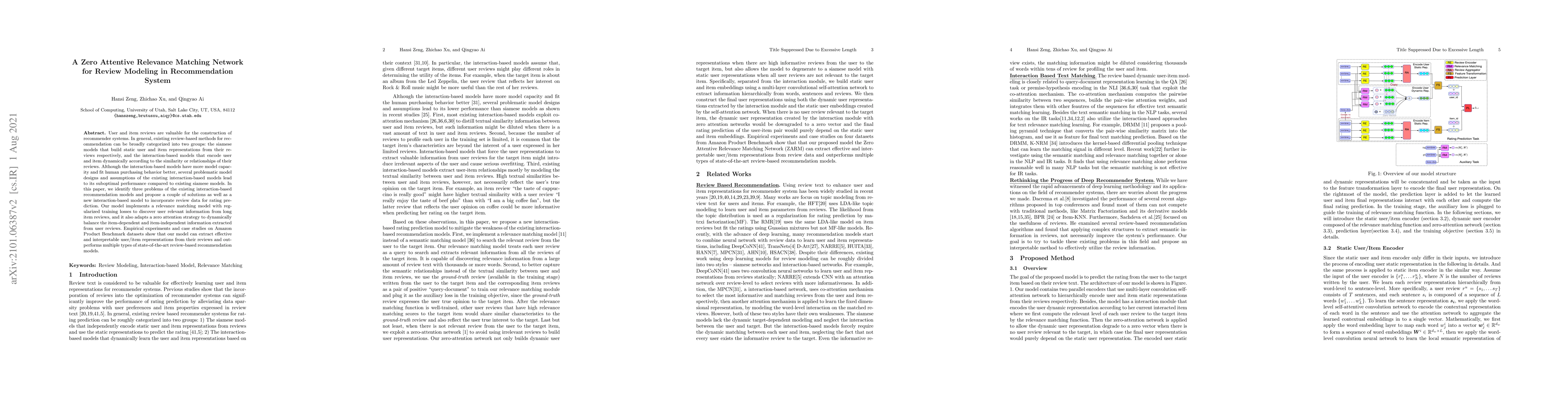 User and item reviews are valuable for the construction of recommender systems. In general, existing review-based methods for recommendation can be broadly categorized into two groups: the siamese models that build static user and item representations from their reviews respectively, and the interaction-based models that encode user and item dynamically according to the similarity or relationships of their reviews. Although the interaction-based models have more model capacity and fit human purchasing behavior better, several problematic model designs and assumptions of the existing interaction-based models lead to its suboptimal performance compared to existing siamese models. In this paper, we identify three problems of the existing interaction-based recommendation models and propose a couple of solutions as well as a new interaction-based model to incorporate review data for rating prediction. Our model implements a relevance matching model with regularized training losses to discover user relevant information from long item reviews, and it also adapts a zero attention strategy to dynamically balance the item-dependent and item-independent information extracted from user reviews. Empirical experiments and case studies on Amazon Product Benchmark datasets show that our model can extract effective and interpretable user/item representations from their reviews and outperforms multiple types of state-of-the-art review-based recommendation models.