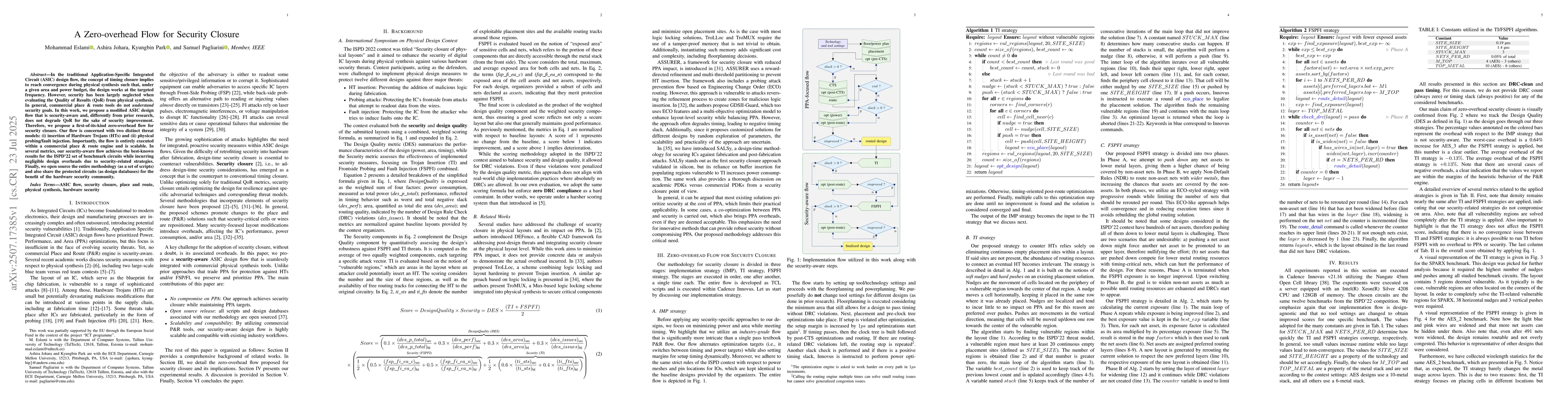 In the traditional Application-Specific Integrated Circuit (ASIC) design flow, the concept of timing closure implies to reach convergence during physical synthesis such that, under a given area and power budget, the design works at the targeted frequency. However, security has been largely neglected when evaluating the Quality of Results (QoR) from physical synthesis. In general, commercial place & route tools do not understand security goals. In this work, we propose a modified ASIC design flow that is security-aware and, differently from prior research, does not degrade QoR for the sake of security improvement. Therefore, we propose a first-of-its-kind zero-overhead flow for security closure. Our flow is concerned with two distinct threat models: (i) insertion of Hardware Trojans (HTs) and (ii) physical probing/fault injection. Importantly, the flow is entirely executed within a commercial place & route engine and is scalable. In several metrics, our security-aware flow achieves the best-known results for the ISPD`22 set of benchmark circuits while incurring negligible design overheads due to security-related strategies. Finally, we open source the entire methodology (as a set of scripts) and also share the protected circuits (as design databases) for the benefit of the hardware security community.