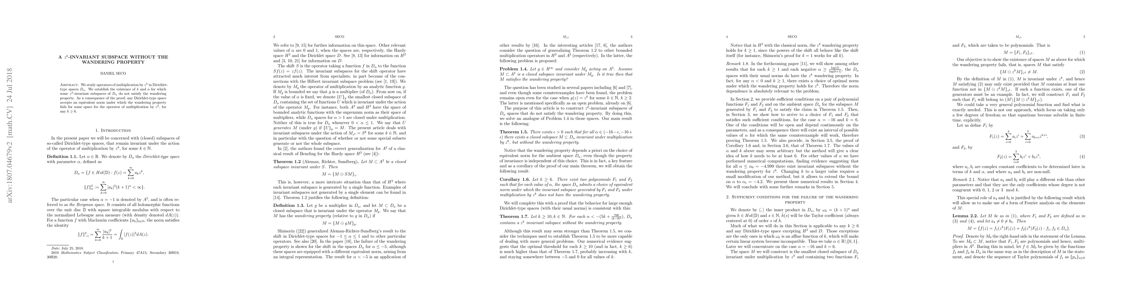 We study operators of multiplication by $z^k$ in Dirichlet-type spaces $D_\alpha$. We establish the existence of $k$ and $\alpha$ for which some $z^k$-invariant subspaces of $D_\alpha$ do not satisfy the wandering property. As a consequence of the proof, any Dirichlet-type space accepts an equivalent norm under which the wandering property fails for some space for the operator of multiplication by $z^k$, for any $k \geq 6$.