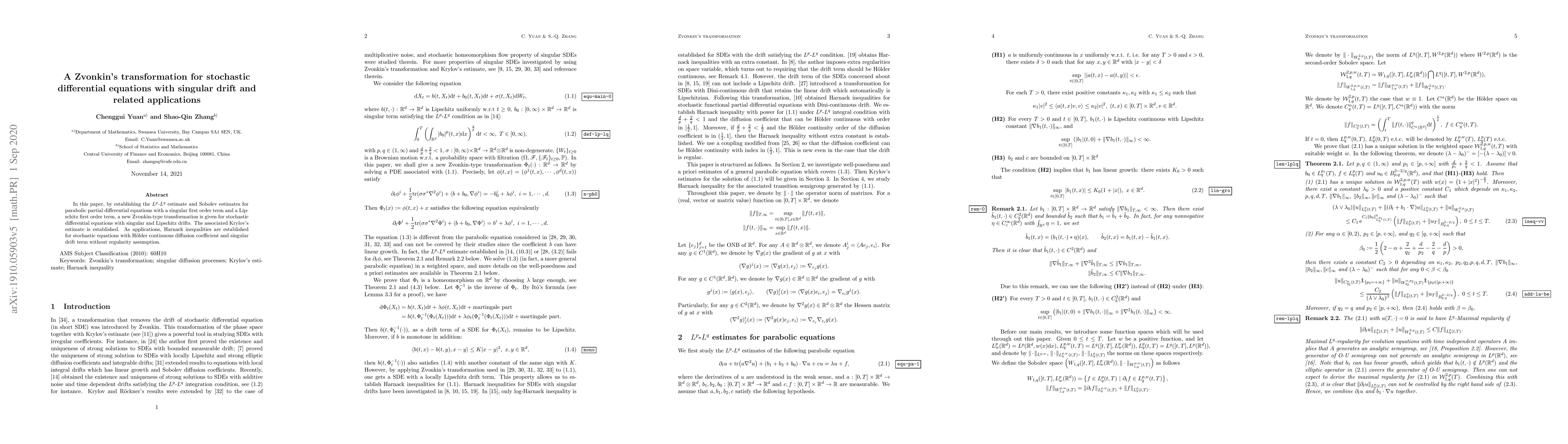 This paper introduces a Zvonkin-type transformation for stochastic differential equations with singular and Lipschitz drifts, establishing $L^p$-$L^q$ and Sobolev estimates for related parabolic partial differential equations. Applications include deriving Harnack inequalities for stochastic equations with H\"older continuous diffusion and singular drift.