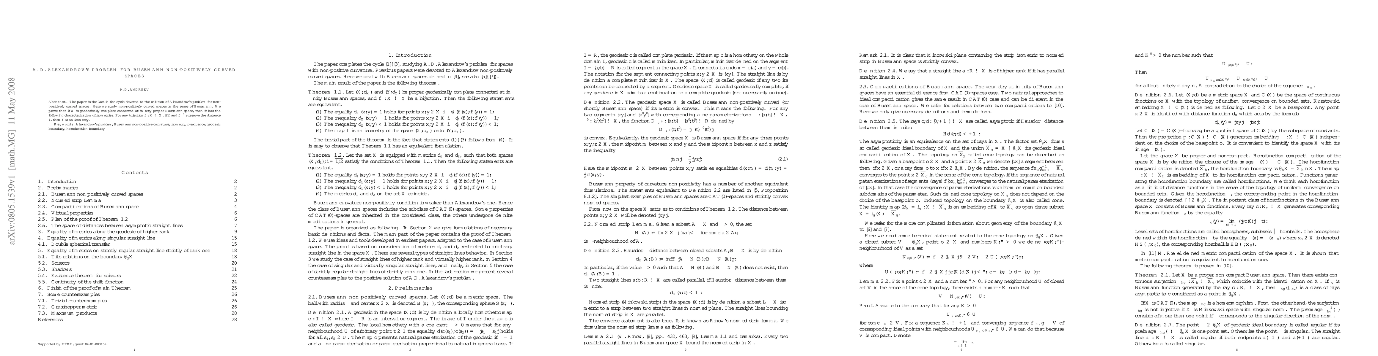 This paper concludes the solution to Alexandrov's problem for non-positively curved spaces in the context of Busemann geometry. It demonstrates that in geodesically complete, connected at infinity, proper Busemann spaces, any bijection preserving distance 1 is necessarily an isometry.
