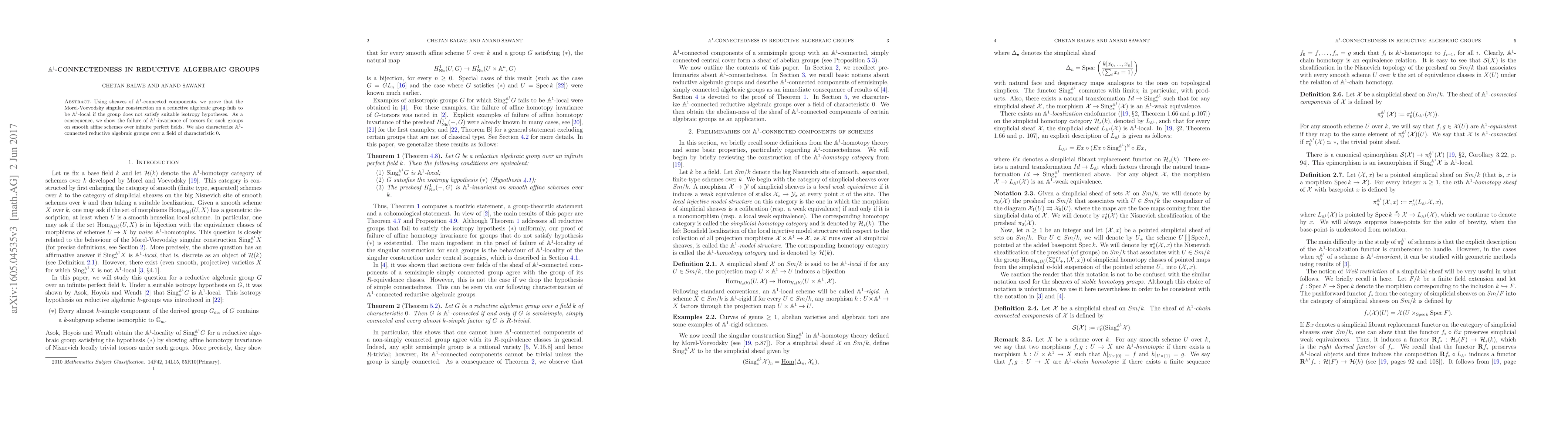 Using sheaves of A^1-connected components, we prove that the Morel-Voevodsky singular construction on a reductive algebraic group fails to be A^1-local if the group does not satisfy suitable isotropy hypotheses. As a consequence, we show the failure of A^1-invariance of torsors for such groups on smooth affine schemes over infinite perfect fields. We also characterize A^1-connected reductive algebraic groups over a field of characteristic 0.