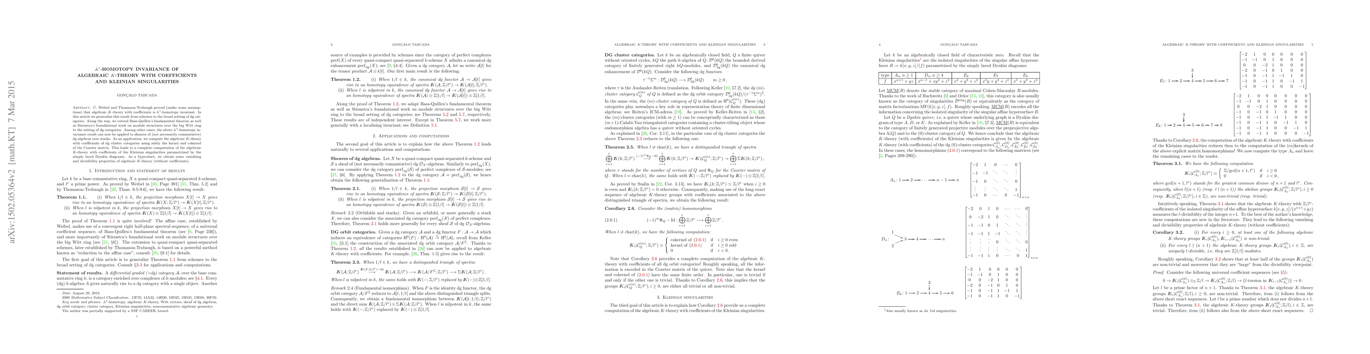C. Weibel and Thomason-Trobaugh proved (under some assumptions) that algebraic K-theory with coefficients is A1-homotopy invariant. In this article we generalize this result from schemes to the broad setting of dg categories. Along the way, we extend Bass-Quillen's fundamental theorem as well as Stienstra's foundational work on module structures over the big Witt ring to the setting of dg categories. Among other cases, the above A1-homotopy invariance result can now be applied to sheaves of (not necessarily commutative) dg algebras over stacks. As an application, we compute the algebraic K-theory with coefficients of dg cluster categories using solely the kernel and cokernel of the Coxeter matrix. This leads to a complete computation of the algebraic K-theory with coefficients of the Kleinian singularities parametrized by the simply laced Dynkin diagrams. As a byproduct, we obtain some vanishing and divisibility properties of algebraic K-theory (without coefficients).