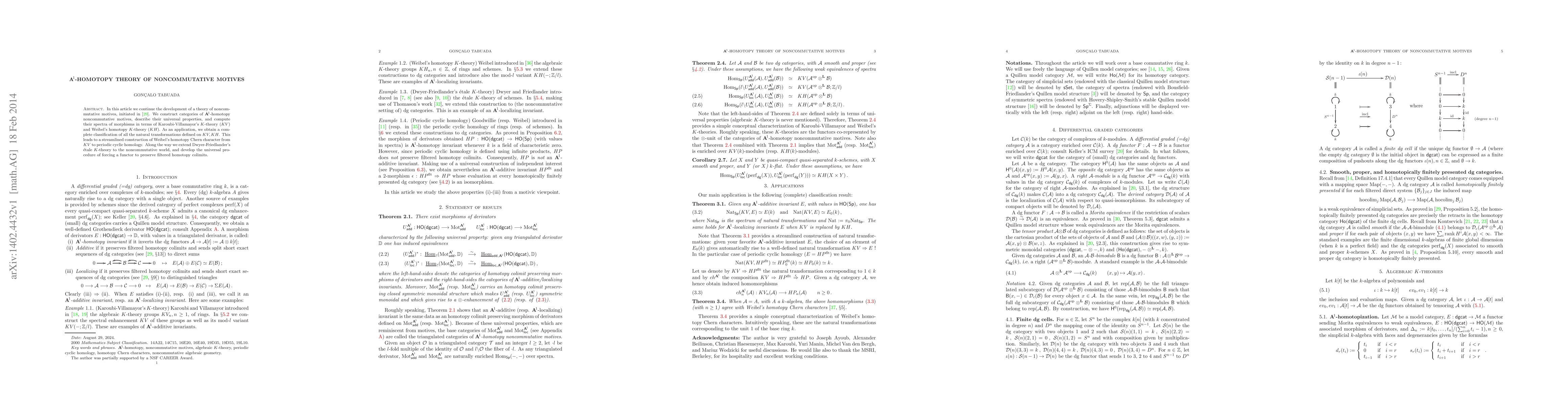 This paper develops a theory of noncommutative motives, constructing categories of A1-homotopy noncommutative motives and classifying natural transformations in Karoubi-Villamayor's K-theory and Weibel's homotopy K-theory, leading to a streamlined Weibel's homotopy Chern character.