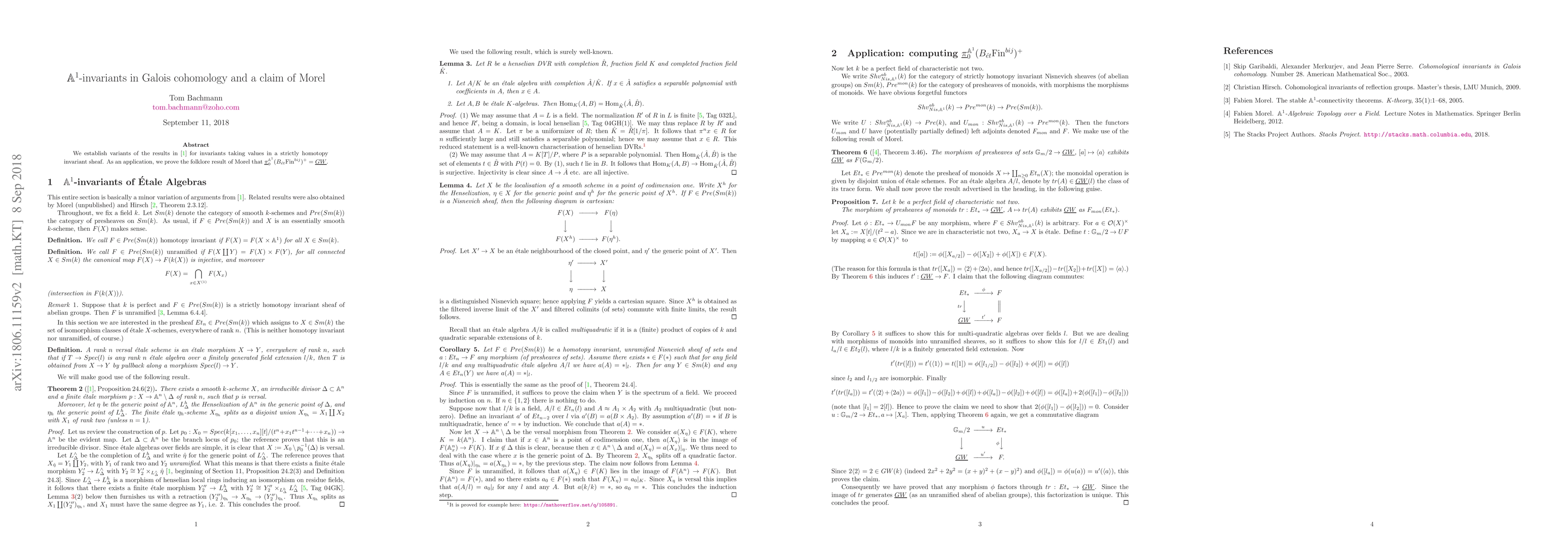 We establish a variant of the splitting principle of Garibaldi-Merkurjev-Serre for invariants taking values in a strictly homotopy invariant sheaf. As an application, we prove the folklore result of Morel that pi_0 of the motivic localization of the group completion of the stack of finite \'etale schemes is given by the sheaf of unramified Grothendieck-Witt groups.