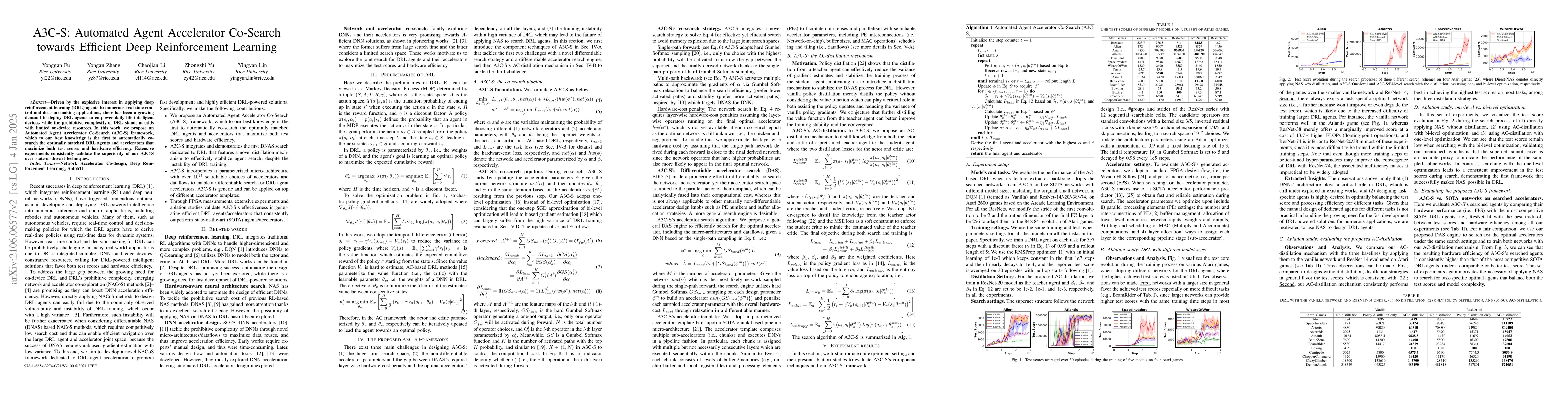 The paper proposes the A3C-S framework to automatically optimize the pairing of deep reinforcement learning agents with hardware accelerators, aiming to maximize both performance and efficiency for on-device applications. Experimental results demonstrate that A3C-S outperforms existing methods in achieving these goals.