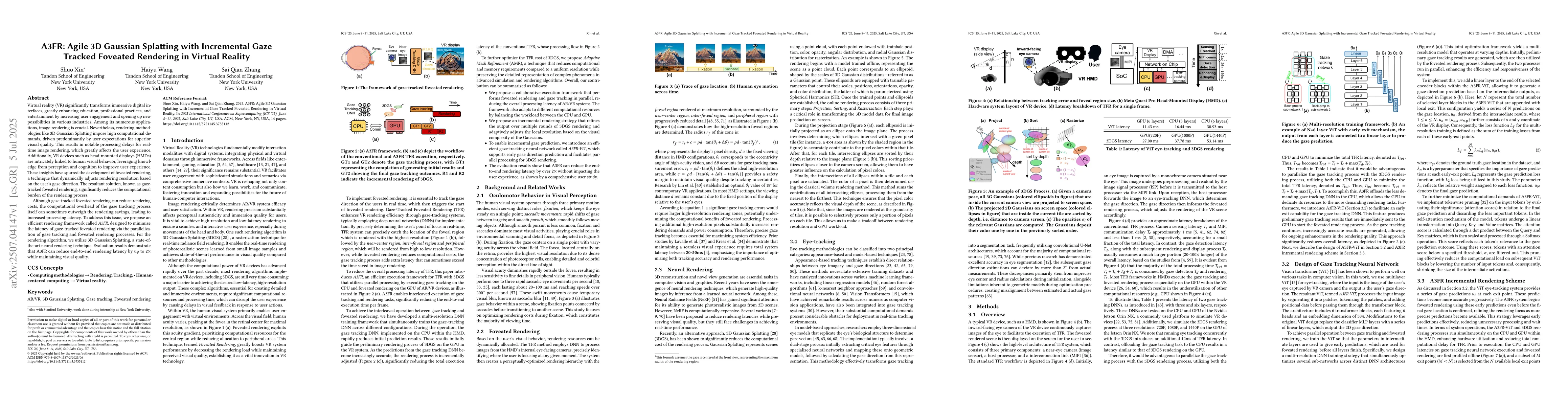 Virtual reality (VR) significantly transforms immersive digital interfaces, greatly enhancing education, professional practices, and entertainment by increasing user engagement and opening up new possibilities in various industries. Among its numerous applications, image rendering is crucial. Nevertheless, rendering methodologies like 3D Gaussian Splatting impose high computational demands, driven predominantly by user expectations for superior visual quality. This results in notable processing delays for real-time image rendering, which greatly affects the user experience. Additionally, VR devices such as head-mounted displays (HMDs) are intricately linked to human visual behavior, leveraging knowledge from perception and cognition to improve user experience. These insights have spurred the development of foveated rendering, a technique that dynamically adjusts rendering resolution based on the user's gaze direction. The resultant solution, known as gaze-tracked foveated rendering, significantly reduces the computational burden of the rendering process. Although gaze-tracked foveated rendering can reduce rendering costs, the computational overhead of the gaze tracking process itself can sometimes outweigh the rendering savings, leading to increased processing latency. To address this issue, we propose an efficient rendering framework called~\textit{A3FR}, designed to minimize the latency of gaze-tracked foveated rendering via the parallelization of gaze tracking and foveated rendering processes. For the rendering algorithm, we utilize 3D Gaussian Splatting, a state-of-the-art neural rendering technique. Evaluation results demonstrate that A3FR can reduce end-to-end rendering latency by up to $2\times$ while maintaining visual quality.