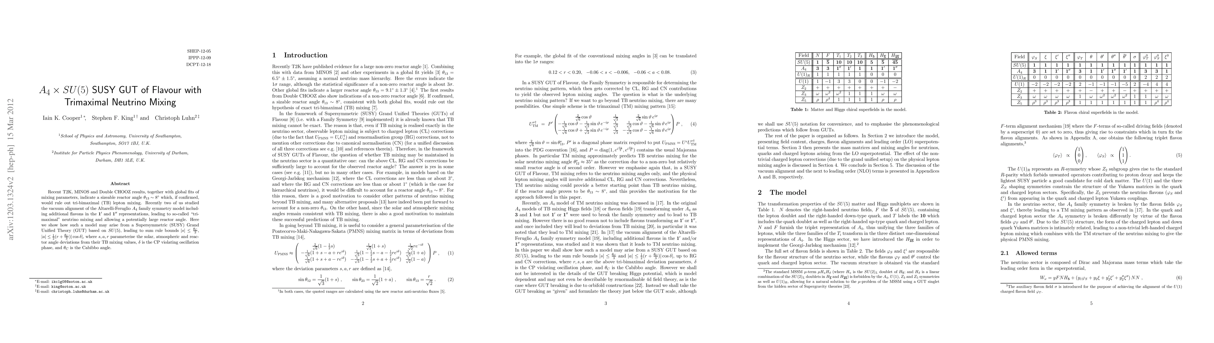 This paper explores a supersymmetric SU(5) Grand Unified Theory (GUT) incorporating the A4 family symmetry to achieve trimaximal neutrino mixing, accommodating a large reactor angle theta13. The model provides sum rule constraints on the deviations of mixing angles and the CP-violating phase, offering a viable alternative to tri-bimaximal mixing.
