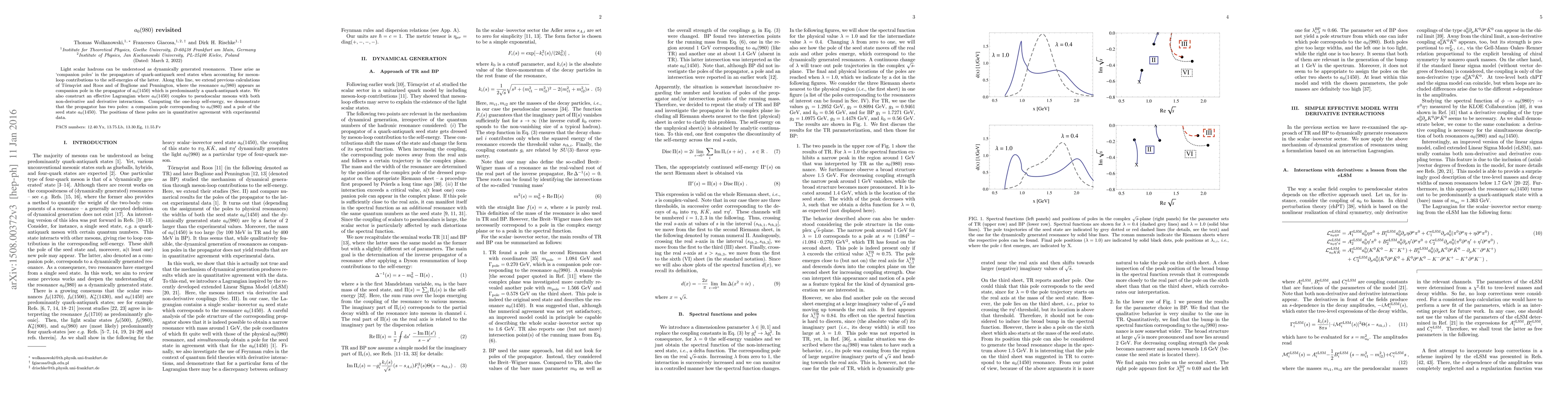 Researchers demonstrate that the $a_{0}(980)$ resonance is a dynamically generated companion pole in the propagator of a related meson state, with their predictions matching experimental data.