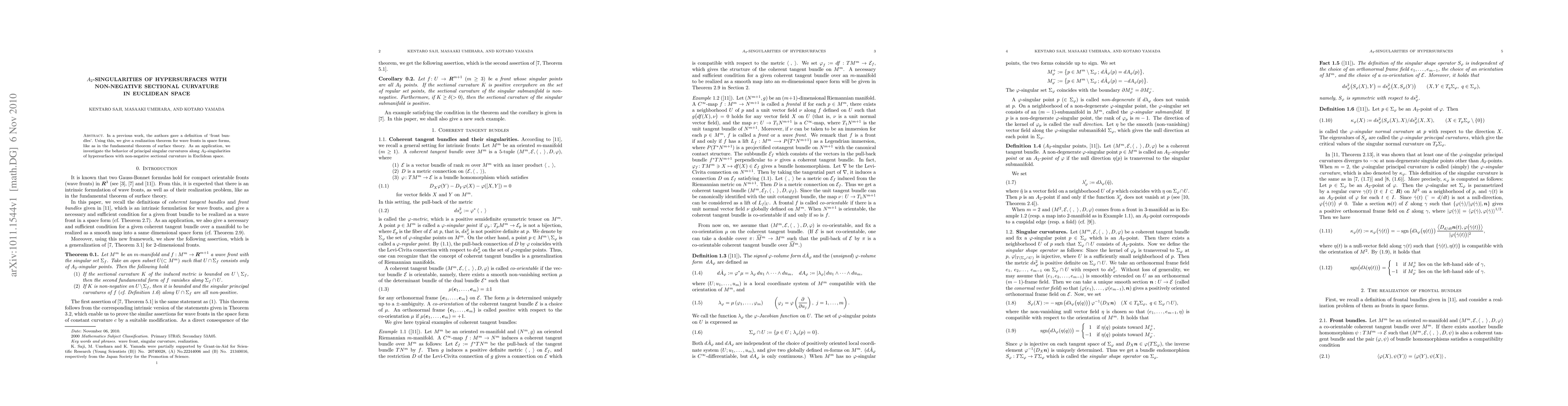 In a previous work, the authors gave a definition of `front bundles'. Using this, we give a realization theorem for wave fronts in space forms, like as in the fundamental theorem of surface theory. As an application, we investigate the behavior of principal singular curvatures along A_2-singularities of hypersurfaces with non-negative sectional curvature in Euclidean space.
