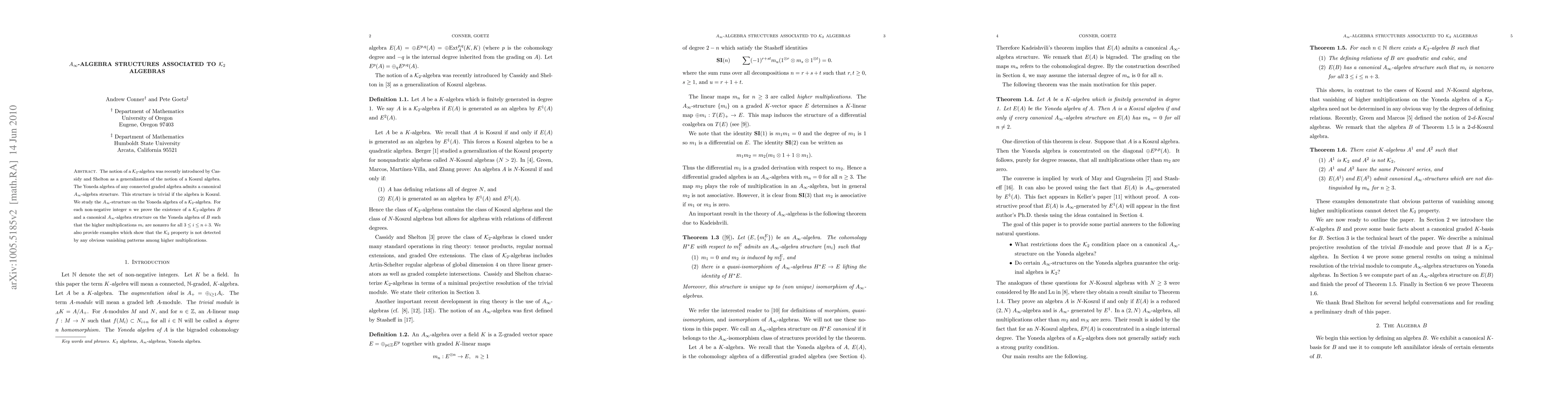 The paper investigates $A_{\infty}$-algebra structures on Yoneda algebras of $\mathcal{K}_2$-algebras, demonstrating the existence of non-trivial higher multiplications for specific $\mathcal{K}_2$-algebras, while noting that $\mathcal{K}_2$ properties cannot be inferred from obvious vanishing patterns in these structures.