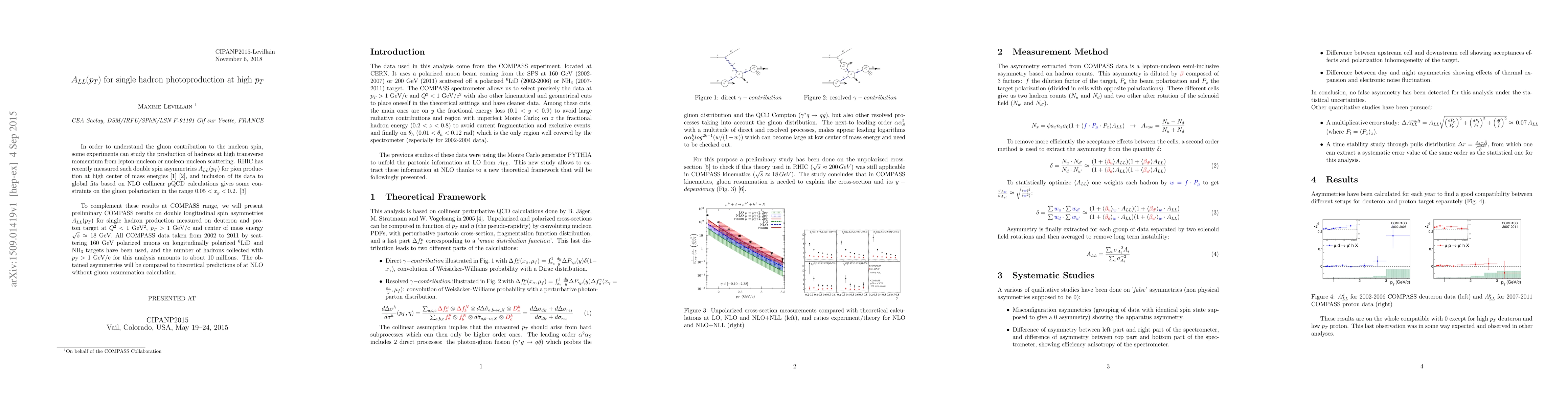 such double spin asymmetries $A_{LL}(p_T)$ for pion production at high center