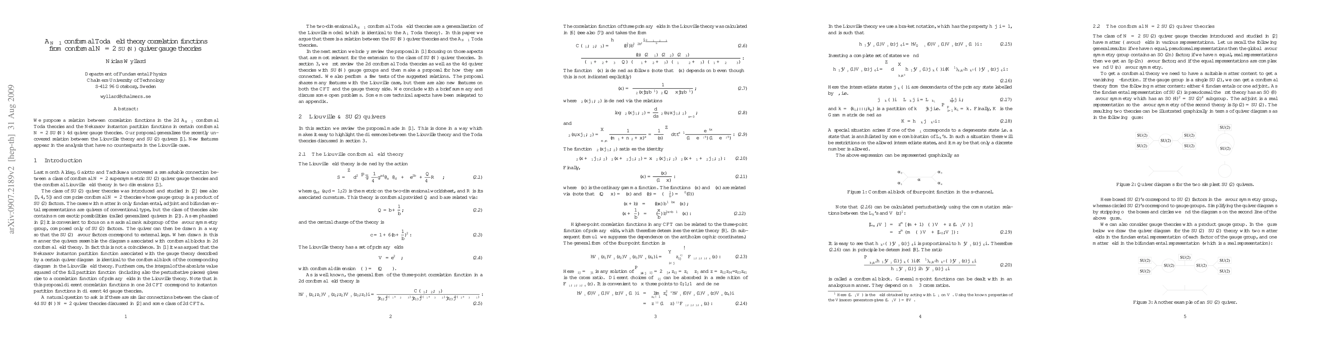 Summary: This research proposes a connection between correlation functions in 2d A_{N-1} conformal Toda field theories and the Nekrasov partition functions in 4d N=2 SU(N) quiver gauge theories, extending a previously found relation involving Liouville theory and SU(2) quivers with new analytical features.