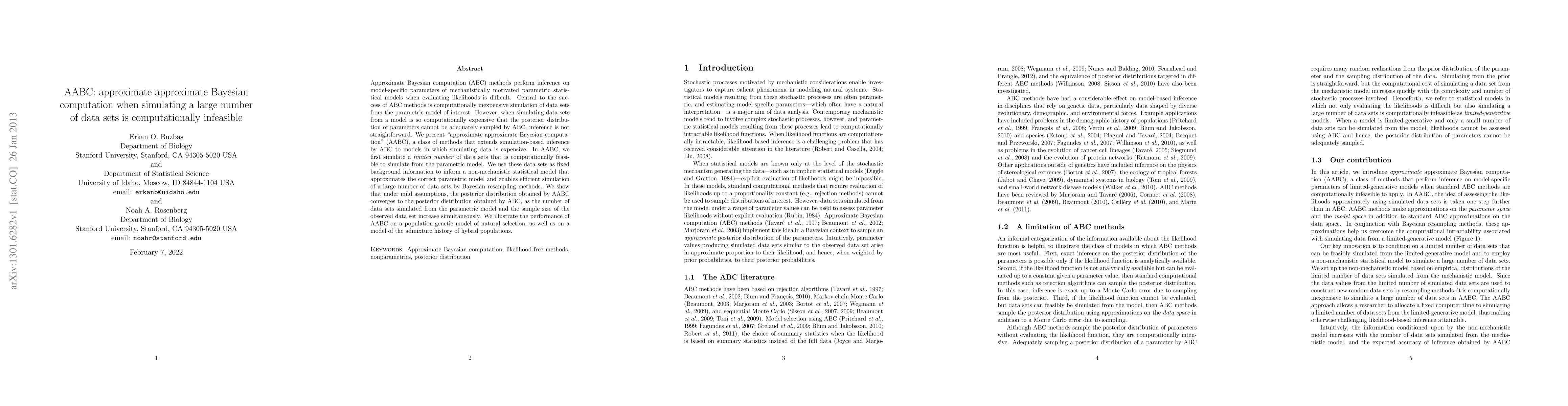 The paper proposes "approximate approximate Bayesian computation" (AABC) to address the computational challenges of traditional ABC methods when simulating large numbers of data sets is infeasible. AABC uses a limited number of computationally feasible simulations to inform a non-mechanistic model, enabling efficient simulation of more data sets, and demonstrates convergence to the true ABC posterior under mild assumptions.