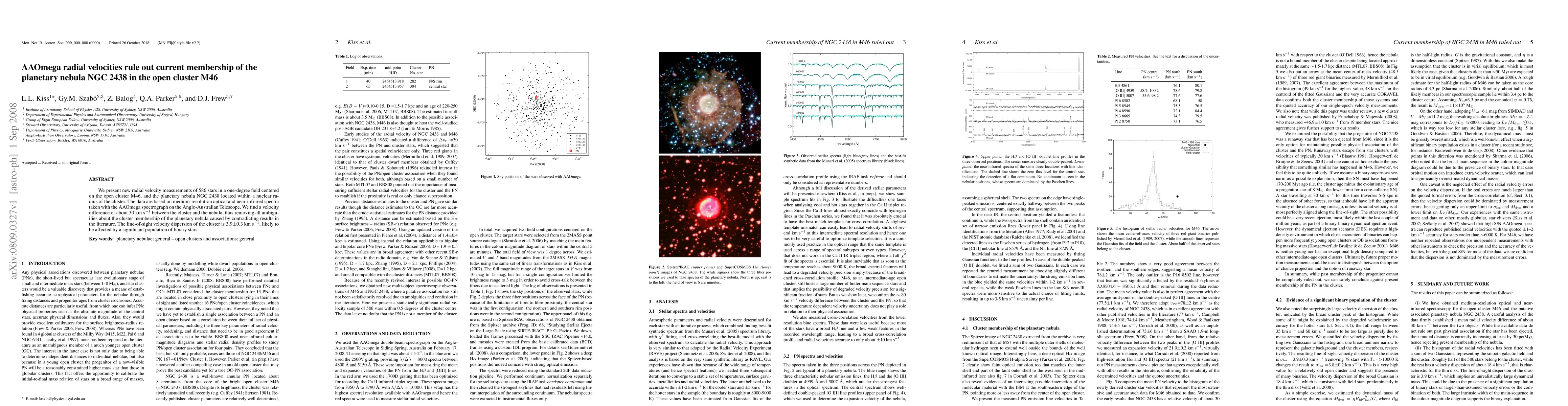 This paper reports new radial velocity measurements that reveal a 30 km/s difference between the open cluster M46 and the planetary nebula NGC 2438, conclusively ruling out NGC 2438's membership in the cluster. The study also notes the cluster's velocity dispersion, likely influenced by binary stars.