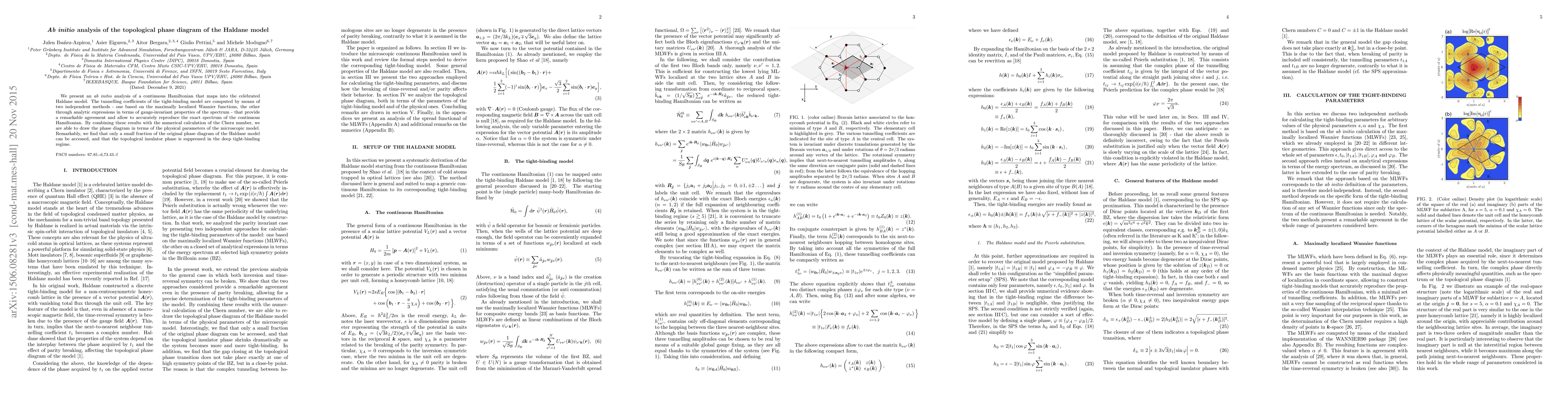 This study performs an ab initio analysis of the Haldane model, computing tunnelling coefficients via two independent methods. The research accurately reproduces the continuous Hamiltonian's spectrum and, using the Chern number, draws the phase diagram. Key findings include a restricted accessible phase diagram and suppression of the topological insulator phase in the deep tight-binding regime.
