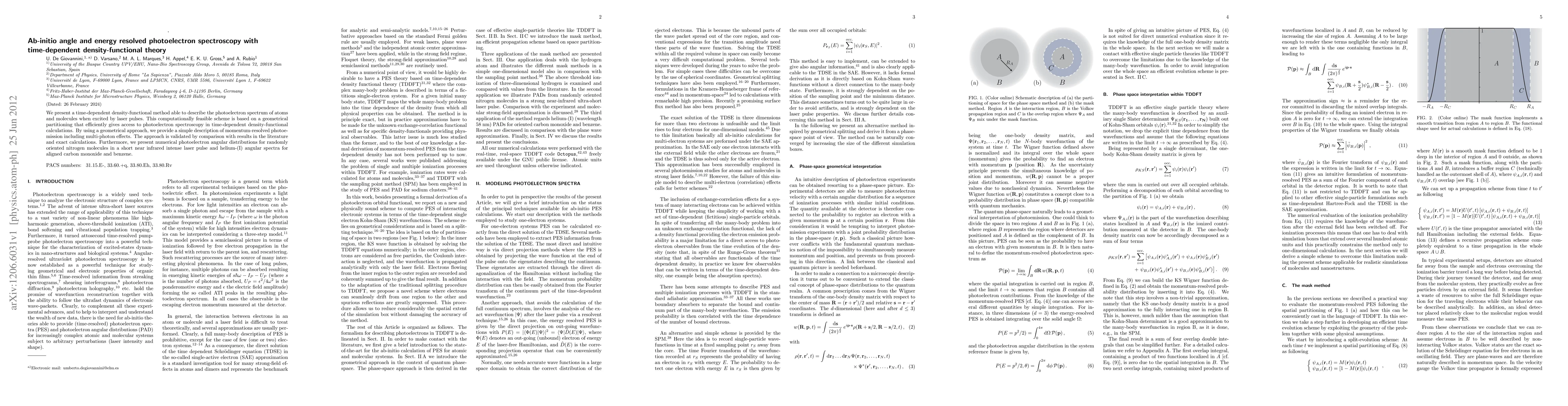 This paper introduces a computationally efficient time-dependent density-functional method for describing photoelectron spectra via laser-excited atoms and molecules, employing a geometrical partitioning approach to access angle and energy resolved photoelectron spectroscopy, validated by comparisons with existing data and exact calculations. The method provides photoelectron angular distributions for nitrogen molecules and helium-(I) angular spectra for aligned carbon monoxide and benzene.