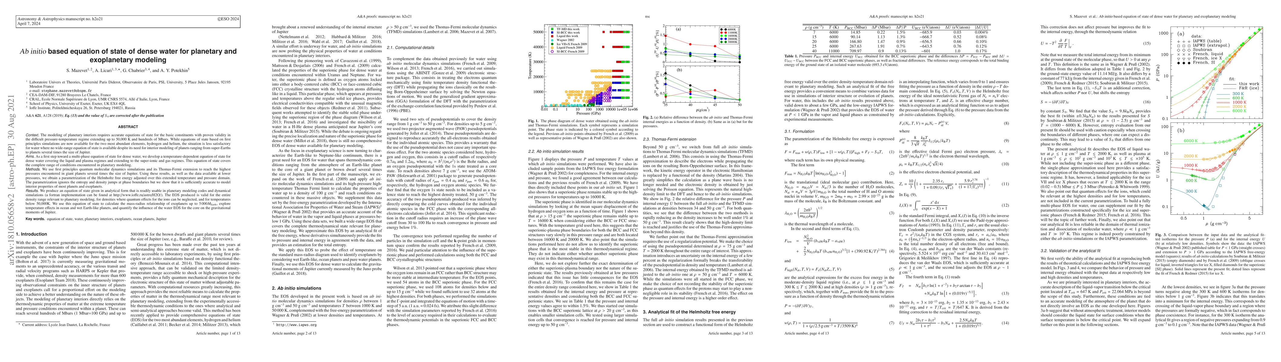 This paper develops a temperature-dependent equation of state for dense water, covering liquid, plasma, super-ionic, and gas regimes, using first principles quantum simulations and parametrization of the Helmholtz free energy. The resulting analytical EOS is applicable for planetary and exoplanetary modeling, providing insights into mass-radius relationships and temperature effects on planetary interiors.