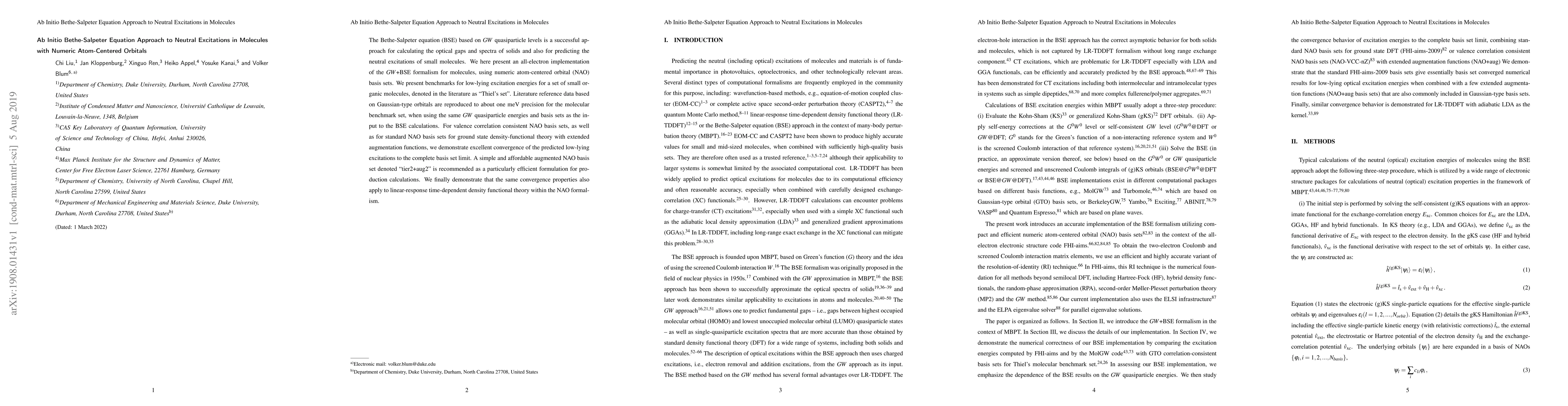 This paper presents an all-electron implementation of the GW+BSE formalism for calculating neutral excitations in small molecules using numeric atom-centered orbitals. It demonstrates excellent convergence and precision for low-lying excitations, recommending "tier2+aug2" as an efficient basis set for production calculations.