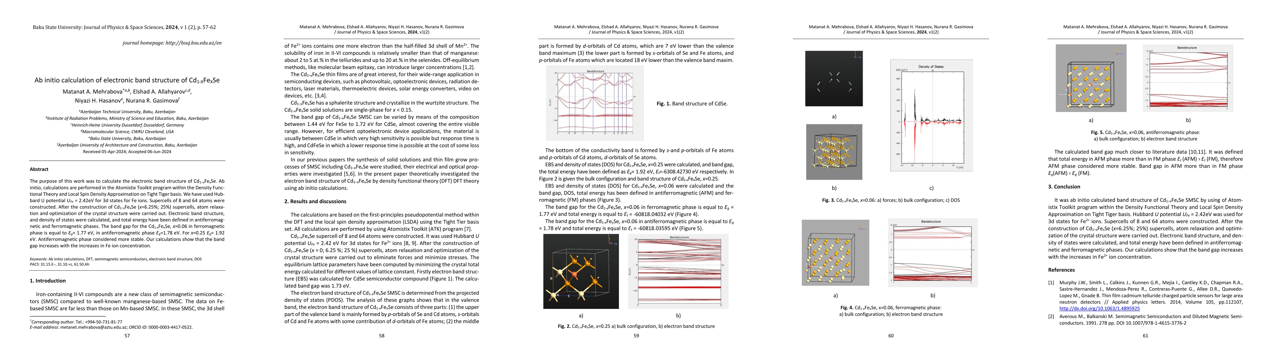 This research presents a novel approach to investigating the electronic band structure of Cd1-xFexSe using ab-initio calculations, which provides new insights into the properties of this material.