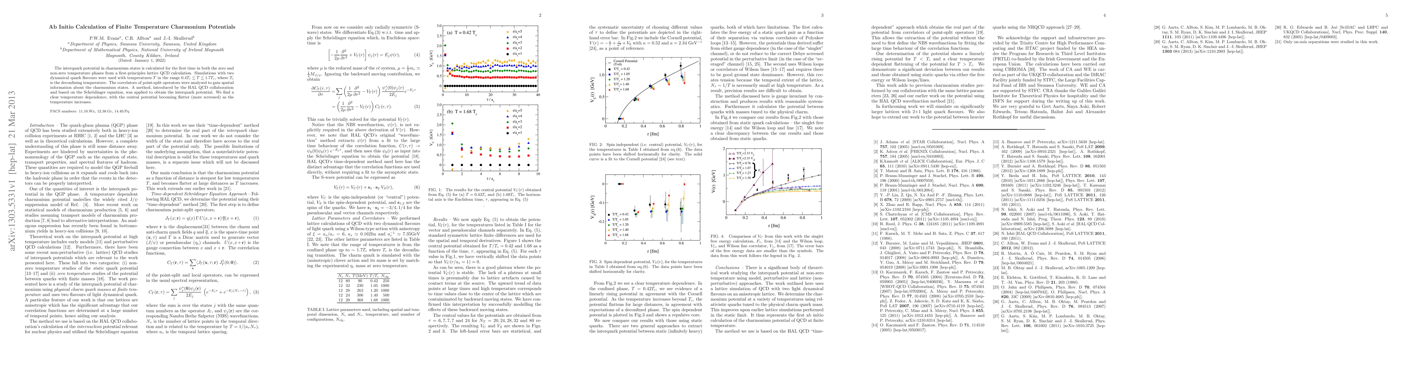 The interquark potential in charmonium states is calculated for the first time in both the zero and non-zero temperature phases from a first-principles lattice QCD calculation. Simulations with two dynamical quark flavours were used with temperatures T in the range 0.4 T_c \lesssim T \lesssim 1.7 T_c, where T_c is the deconfining temperature. The correlators of point-split operators were analysed to gain spatial information about the charmonium states. A method, introduced by the HAL QCD collaboration and based on the Schroedinger equation, was applied to obtain the interquark potential. We find a clear temperature dependence, with the central potential becoming flatter (more screened) as the temperature increases.