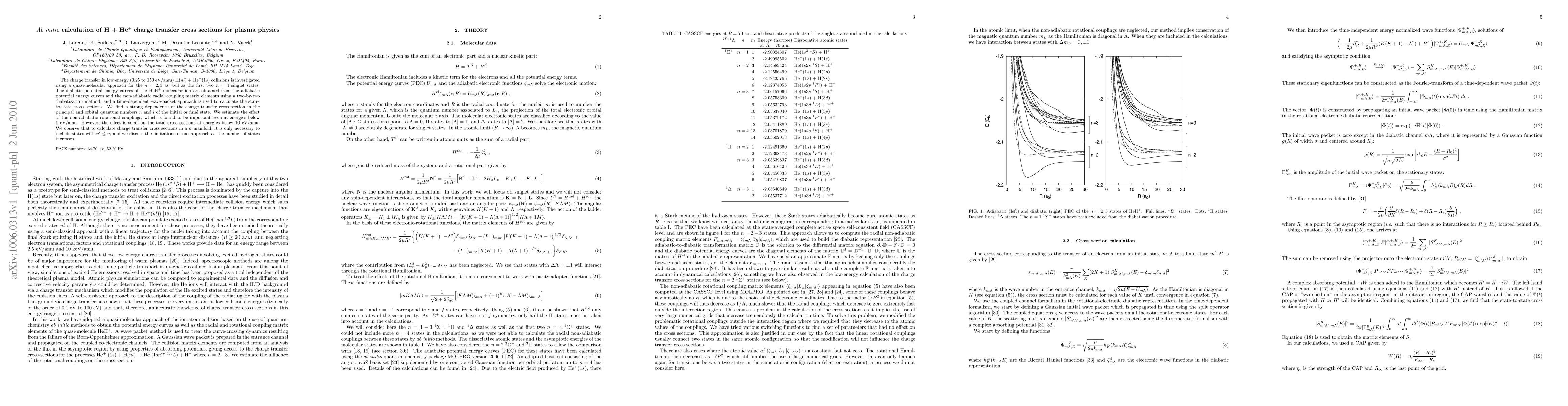 This paper investigates charge transfer in low-energy H($nl$) + He$^+(1s)$ collisions using a quasi-molecular approach, finding strong dependence on quantum numbers $n$ and $l$. The study highlights the importance of non-adiabatic couplings, especially at low energies, and suggests that only states with $n^{\prime}\leq n$ are needed for accurate cross-section calculations.