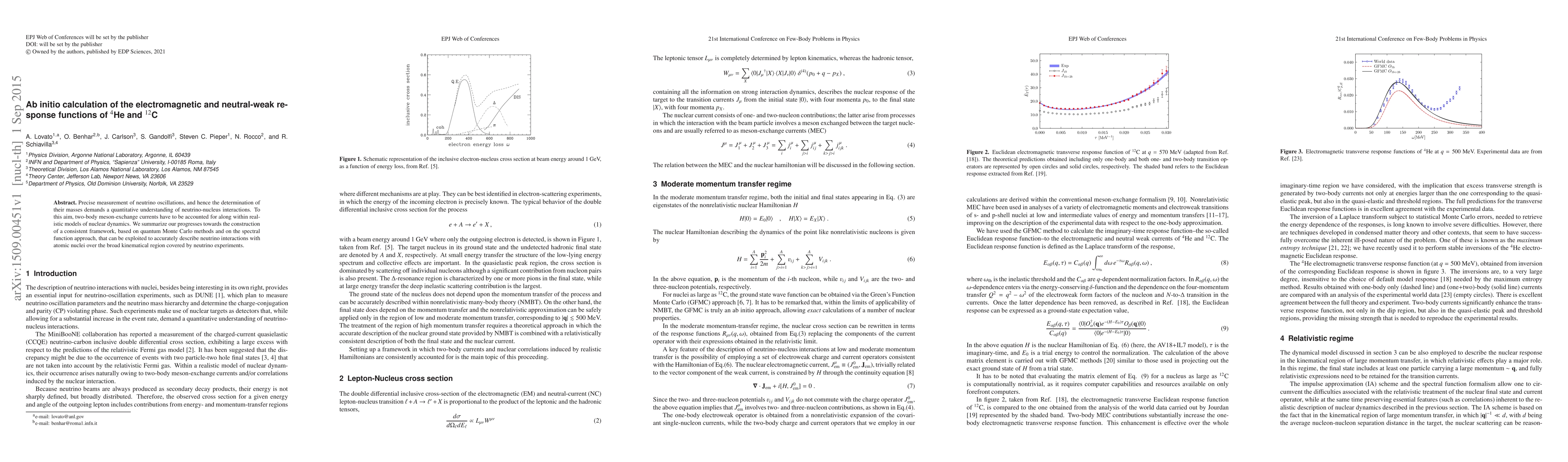 This paper presents advancements in ab initio calculations for the electromagnetic and neutral-weak response functions of 4He and 12C, aiming to improve the understanding of neutrino interactions with atomic nuclei, crucial for precise measurements of neutrino oscillations and mass determination. The study employs quantum Monte Carlo methods and spectral function approaches to develop a consistent framework for these interactions.