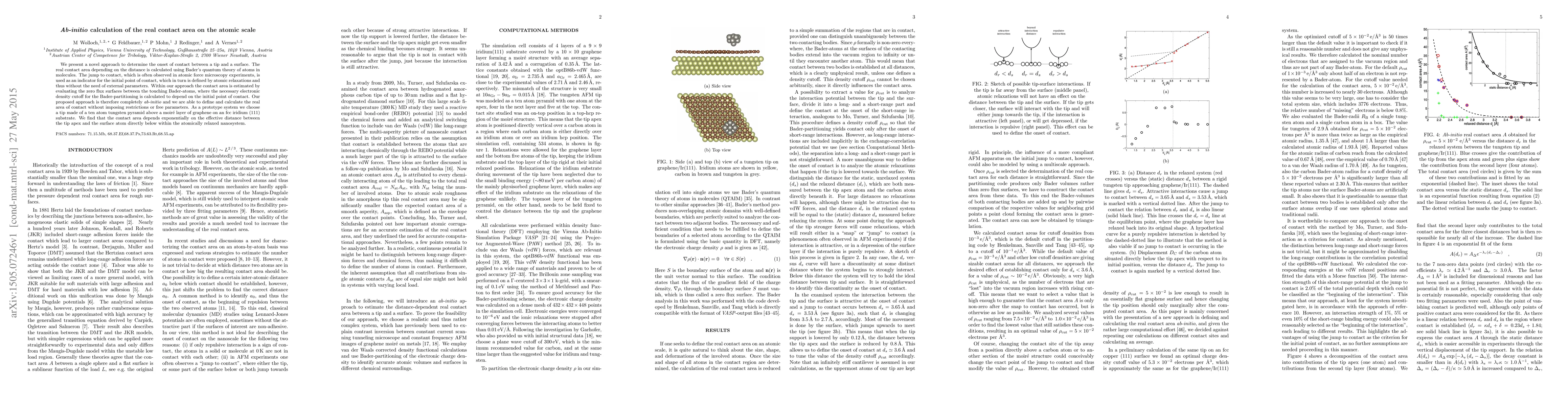 This paper introduces an ab-initio method to calculate the real contact area between a tip and a surface using Bader's quantum theory of atoms in molecules, defining the initial contact point through atomic relaxations without external parameters. The contact area is found to depend exponentially on the effective distance between the tip apex and the surface atom.