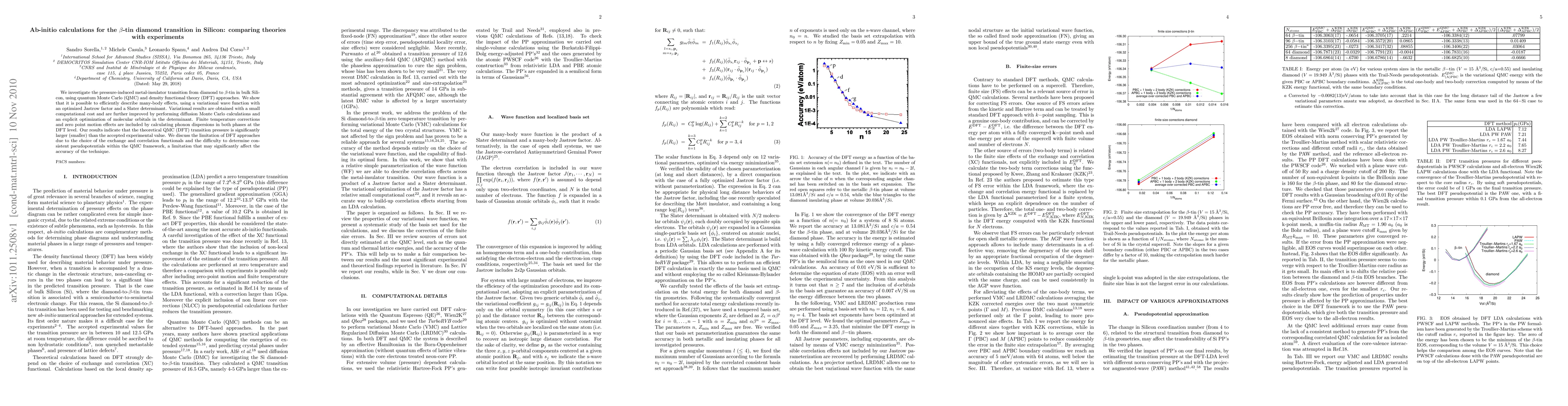 This paper uses quantum Monte Carlo and density functional theory to study the pressure-induced metal-insulator transition in silicon from diamond to beta-tin. The results show that theoretical predictions differ from experimental values, highlighting limitations in DFT and QMC methods.