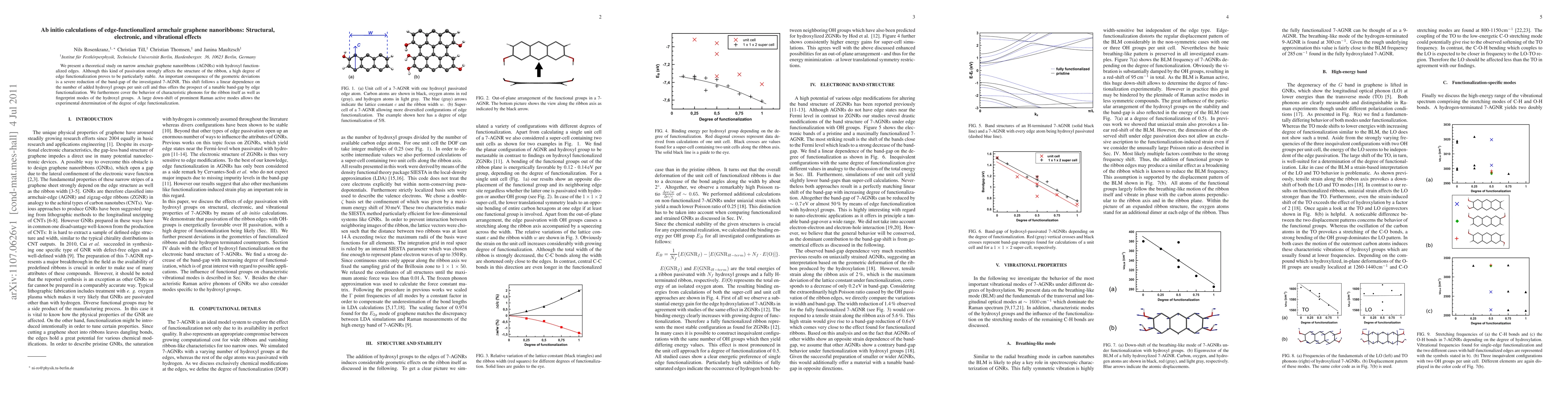 We present a theoretical study on narrow armchair graphene nanoribbons (AGNRs) with hydroxyl functionalized edges. Although this kind of passivation strongly affects the structure of the ribbon, a high degree of edge functionalization proves to be particularly stable. An important consequence of the geometric deviations is a severe reduction of the band-gap of the investigated 7-AGNR. This shift follows a linear dependence on the number of added hydroxyl groups per unit cell and thus offers the prospect of a tunable band-gap by edge functionalization. We furthermore cover the behavior of characteristic phonons for the ribbon itself as well as fingerprint modes of the hydroxyl groups. A large down-shift of prominent Raman active modes allows the experimental determination of the degree of edge functionalization.