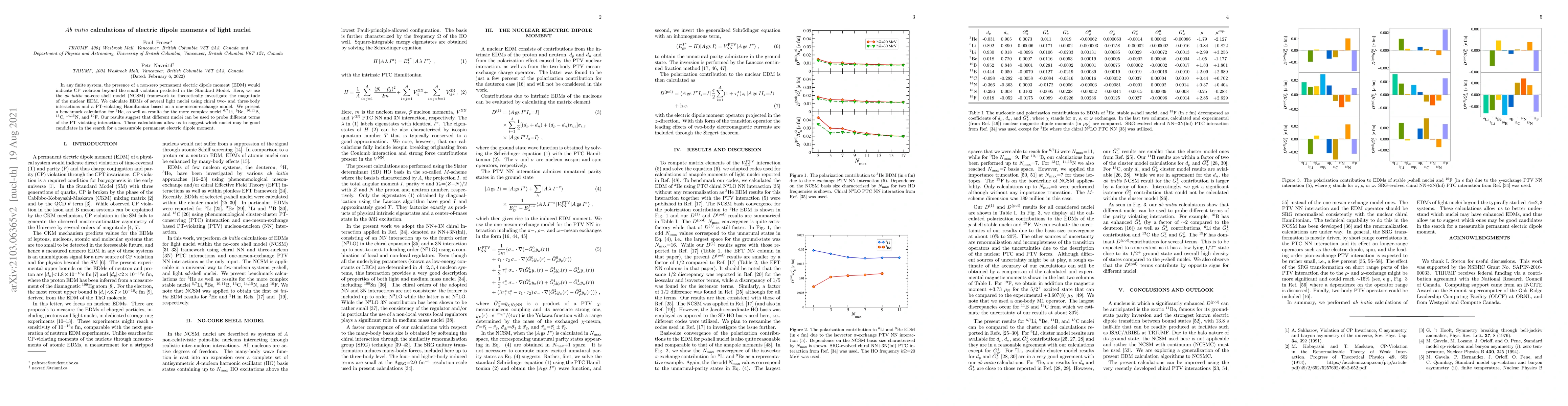 This paper uses ab initio no-core shell model calculations to determine the electric dipole moments (EDMs) of several light nuclei, indicating potential CP violation beyond the Standard Model. The study identifies $^3$He and other nuclei as promising candidates for probing CP violation through their EDMs.