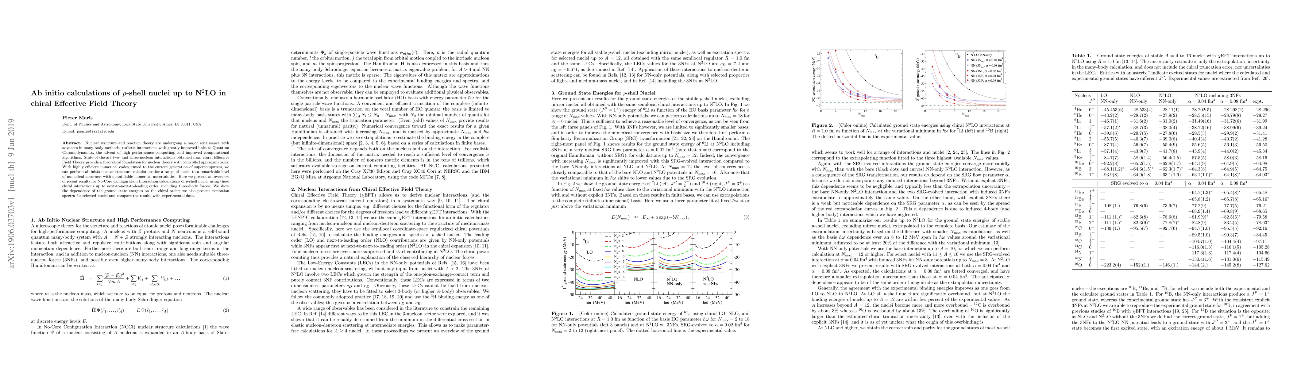 This paper presents ab initio calculations for p-shell nuclei using chiral Effective Field Theory up to next-to-next-to-leading order, showcasing ground state energies and excitation spectra, and comparing results with experimental data to validate the theoretical framework.