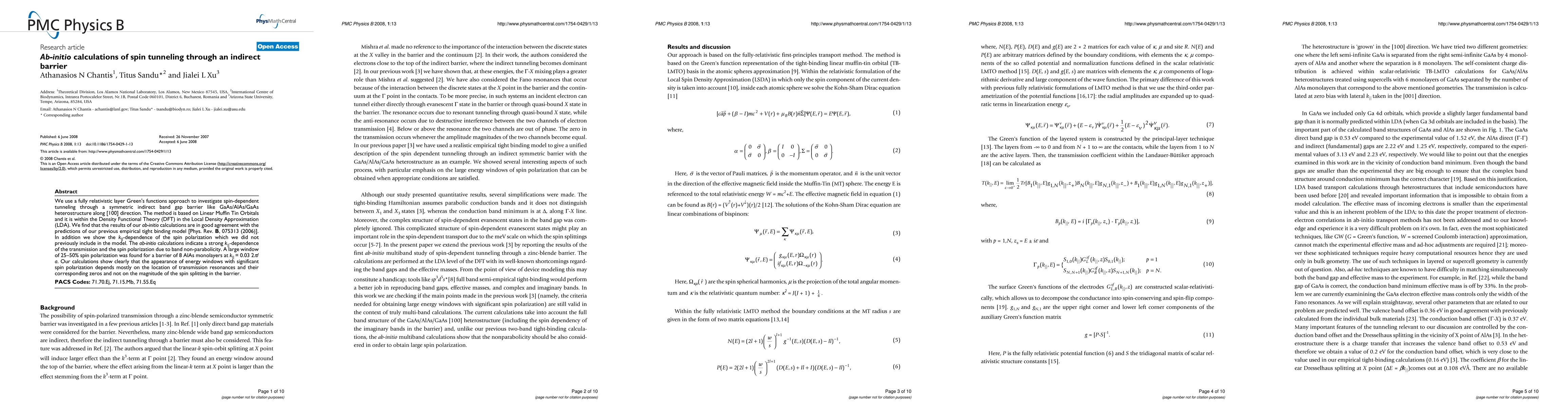 This paper uses ab-initio calculations based on relativistic layer Green's functions to study spin-dependent tunneling through a GaAs/AlAs/GaAs heterostructure. The results show a strong $k_{||}$-dependence of transmission and spin polarization, revealing significant spin polarization windows dependent on transmission resonance locations rather than spin splitting magnitude.