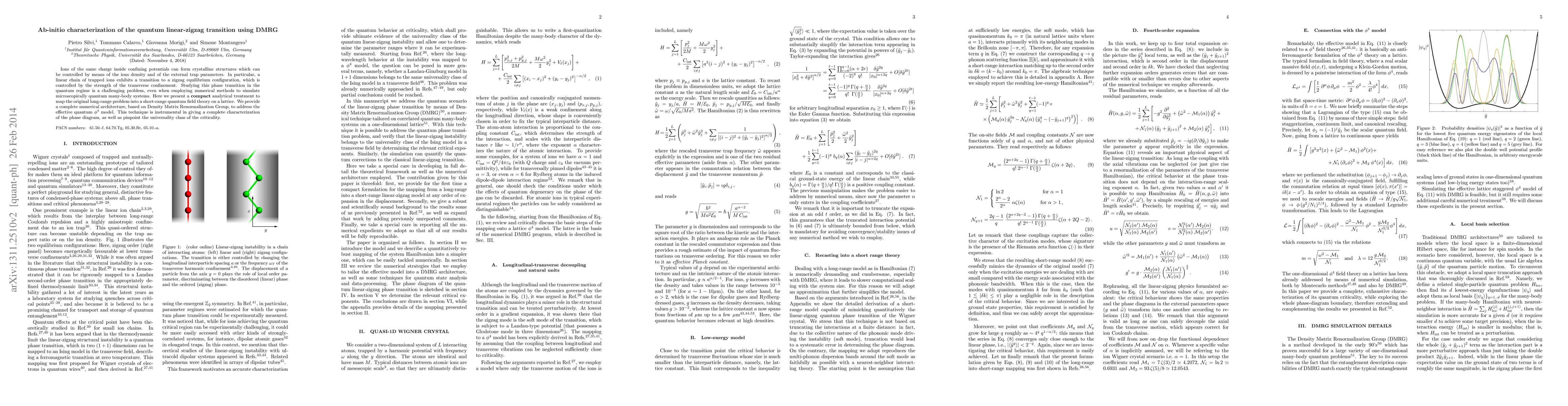 This paper uses Density Matrix Renormalization Group (DMRG) to study the quantum linear-zigzag transition in a chain of trapped ions, transforming the long-range problem into a short-range quantum field theory. The DMRG method provides a complete characterization of the phase diagram and identifies the universality class of the criticality.