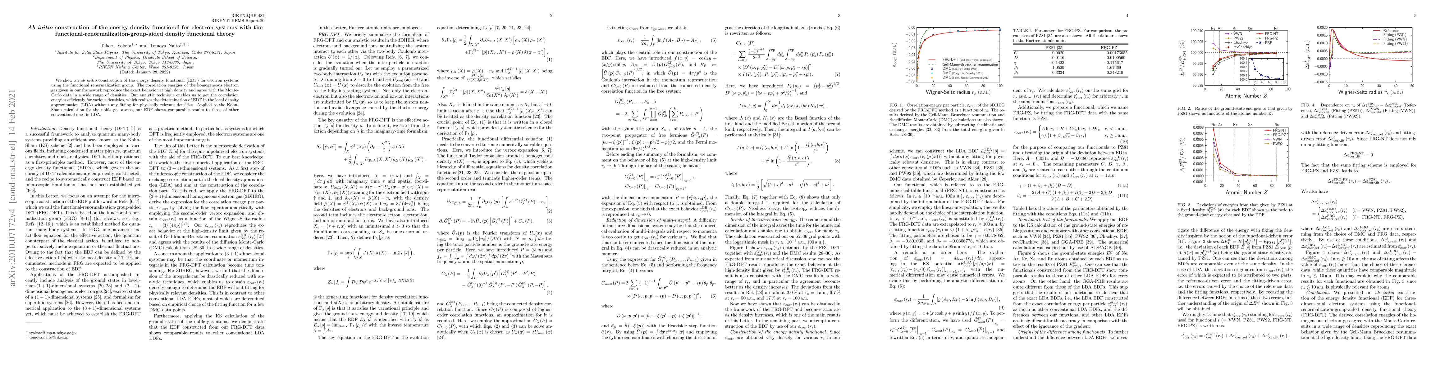 We show an $\textit{ab initio}$ construction of the energy density functional (EDF) for electron systems using the functional renormalization group. The correlation energies of the homogeneous electron gas given in our framework reproduce the exact behavior at high density and agree with the Monte-Carlo data in a wide range of densities. Our analytic technique enables us to get the correlation energies efficiently for various densities, which realizes the determination of EDF in the local density approximation (LDA) without any fitting for physically relevant densities. Applied to the Kohn-Sham calculation for the noble gas atoms, our EDF shows comparable results to those of other conventional ones in LDA.