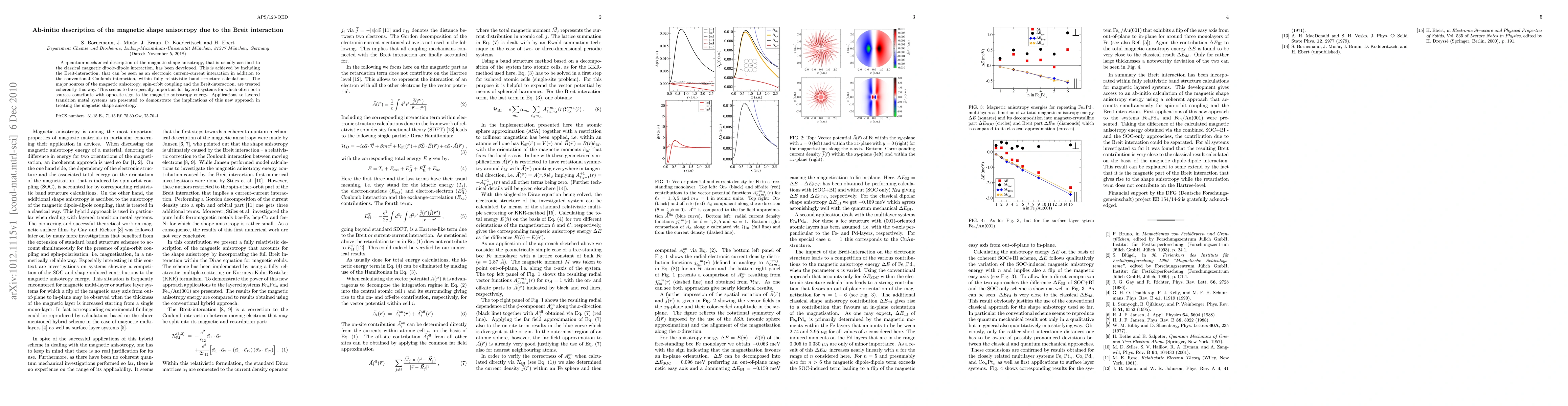 A quantum-mechanical description of the magnetic shape anisotropy, that is usually ascribed to the classical magnetic dipole-dipole interaction, has been developed. This is achieved by including the Breit-interaction, that can be seen as an electronic current-current interaction in addition to the conventional Coulomb interaction, within fully relativistic band structure calculations. The major sources of the magnetic anisotropy, spin-orbit coupling and the Breit-interaction, are treated coherently this way. This seems to be especially important for layered systems for which often both sources contribute with opposite sign to the magnetic anisotropy energy. Applications to layered transition metal systems are presented to demonstrate the implications of this new approach in treating the magnetic shape anisotropy.