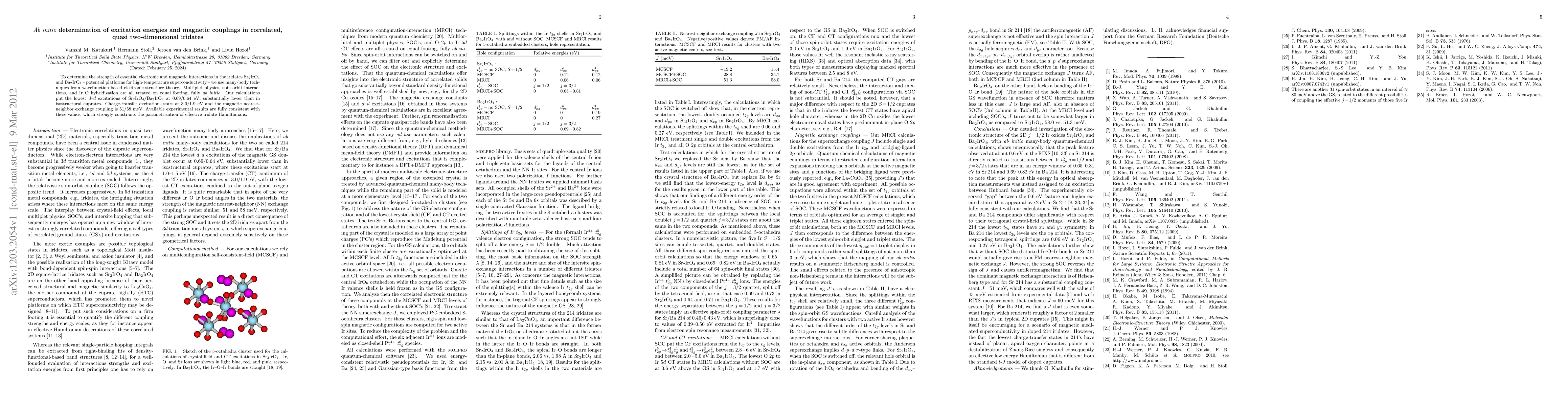 To determine the strength of essential electronic and magnetic interactions in the iridates Sr$_2$IrO$_4$ and Ba$_2$IrO$_4$ - potential platforms for high-temperature superconductivity - we use many-body techniques from wavefunction-based electronic-structure theory. Multiplet physics, spin-orbit interactions, and Ir-O hybridization are all treated on equal footing, fully {\it ab initio}. Our calculations put the lowest d-d excitations of Sr$_2$IrO$_4$/Ba$_2$IrO$_4$ at 0.69/0.64 eV, substantially lower than in isostructural cuprates. Charge-transfer excitations start at 3.0/1.9 eV and the magnetic nearest-neighbor exchange coupling is 51/58 meV. Available experimental results are fully consistent with these values, which strongly constrains the parametrization of effective iridate Hamiltonians.