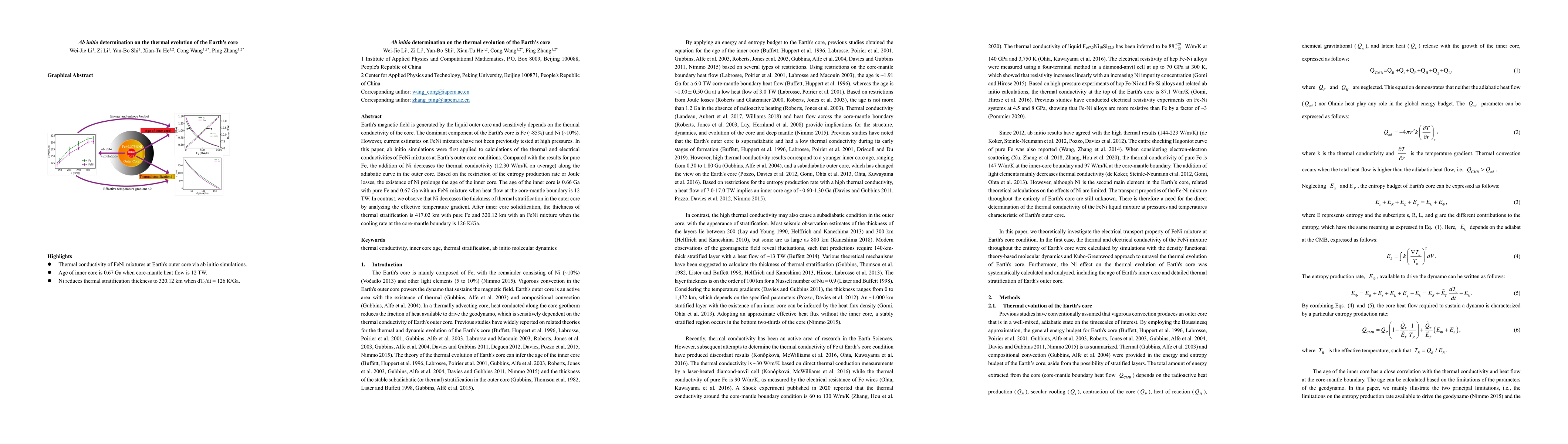 This paper uses ab initio simulations to determine thermal conductivities of FeNi mixtures under Earth's outer core conditions, finding that Ni decreases thermal conductivity and increases the inner core's age by prolonging thermal stratification. The inner core's age is estimated at 0.67 Ga for an FeNi mixture versus 0.66 Ga for pure Fe.