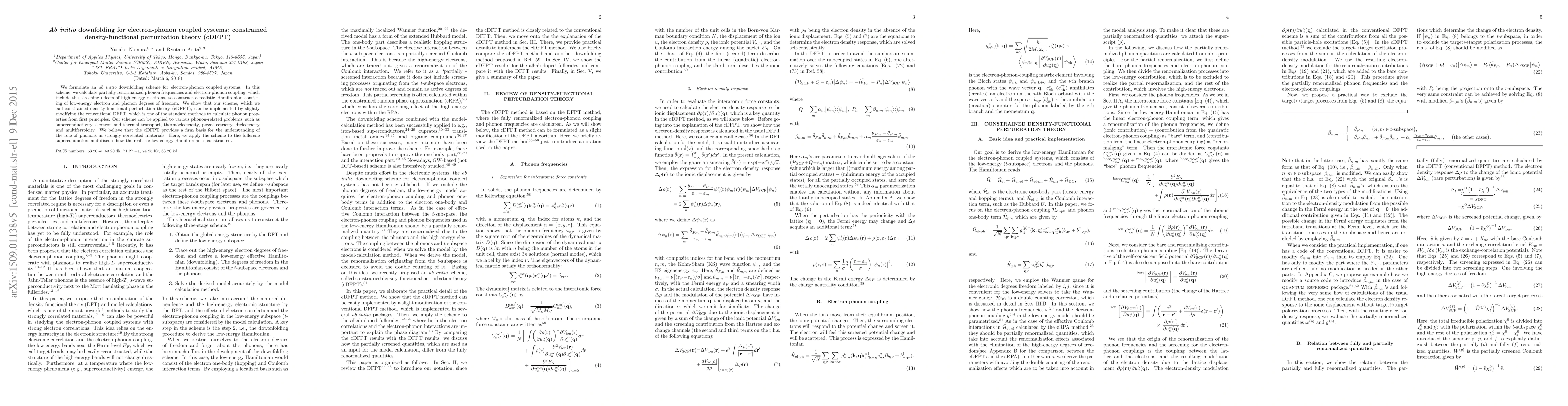 The paper introduces an ab initio downfolding scheme called constrained density-functional perturbation theory (cDFPT) to calculate electron-phonon coupling and phonon properties, showing it can be implemented via slight modifications to conventional DFPT. The method is applied to fullerene superconductors to demonstrate its utility in understanding phonon roles in strongly correlated materials.
