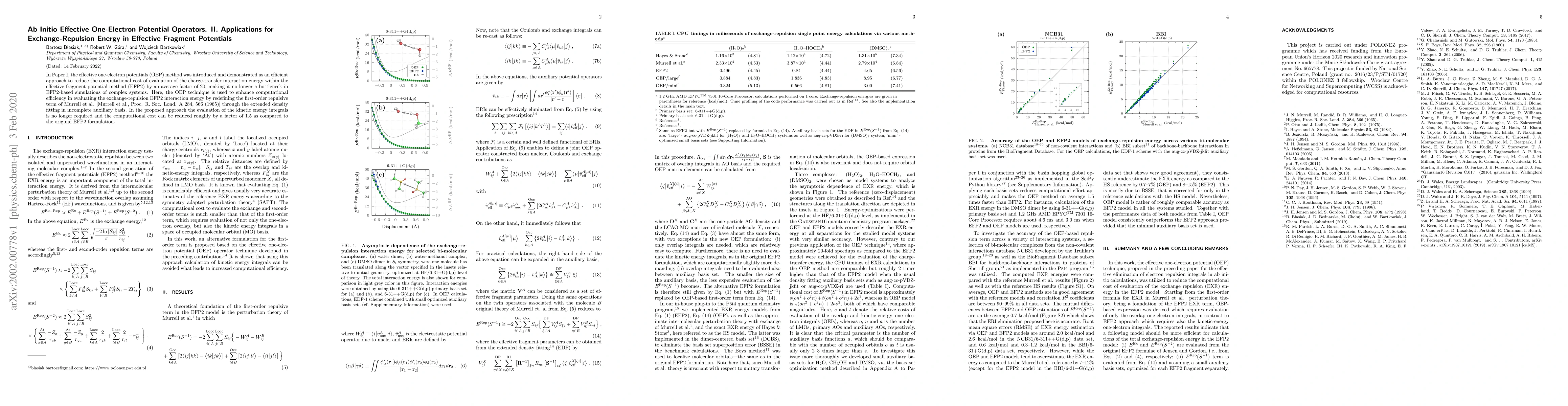 In Paper I, the effective one-electron potentials (OEP) method was introduced and demonstrated as an efficient approach to reduce the computational cost of evaluation of the charge-transfer interaction energy within the effective fragment potential method (EFP2) by an average factor of 20, making it no longer a bottleneck in EFP2-based simulations of complex systems. Here, the OEP technique is used to enhance computational efficiency in evaluating the exchange-repulsion EFP2 interaction energy by redefining the first-order repulsive term of Murrell et al. [Murrell et al., Proc. R. Soc. Lond. A 284, 566 (1965)] through the extended density fitting in incomplete auxiliary basis. In the proposed approach the evaluation of the kinetic energy integrals is no longer required and the computational cost can be reduced roughly by a factor of 1.5 as compared to the original EFP2 formulation.