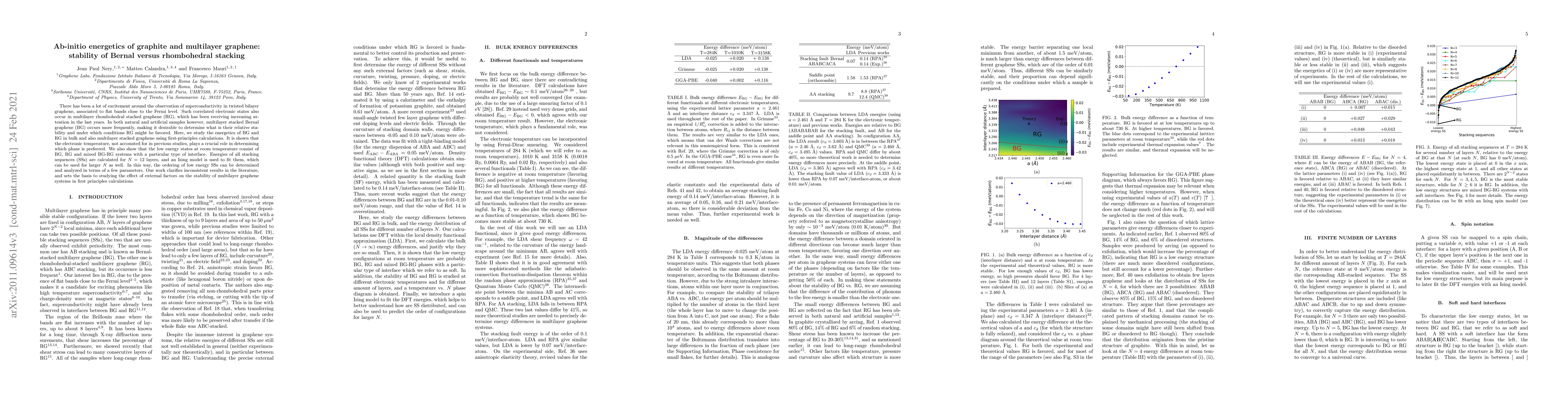 There has been a lot of excitement around the observation of superconductivity in twisted bilayer graphene, associated to flat bands close to the Fermi level. Such correlated electronic states also occur in multilayer rhombohedral stacked graphene (RG), which has been receiving increasing attention in the last years. In both natural and artificial samples however, multilayer stacked Bernal graphene (BG) occurs more frequently, making it desirable to determine what is their relative stability and under which conditions RG might be favored. Here, we study the energetics of BG and RG in bulk and also multilayer stacked graphene using first-principles calculations. It is shown that the electronic temperature, not accounted for in previous studies, plays a crucial role in determining which phase is preferred. We also show that the low energy states at room temperature consist of BG, RG and mixed BG-RG systems with a particular type of interface. Energies of all stacking sequences (SSs) are calculated for N = 12 layers, and an Ising model is used to fit them, which can be used for larger N as well. In this way, the ordering of low energy SSs can be determined and analyzed in terms of a few parameters. Our work clarifies inconsistent results in the literature, and sets the basis to studying the effect of external factors on the stability of multilayer graphene systems in first principles calculations.