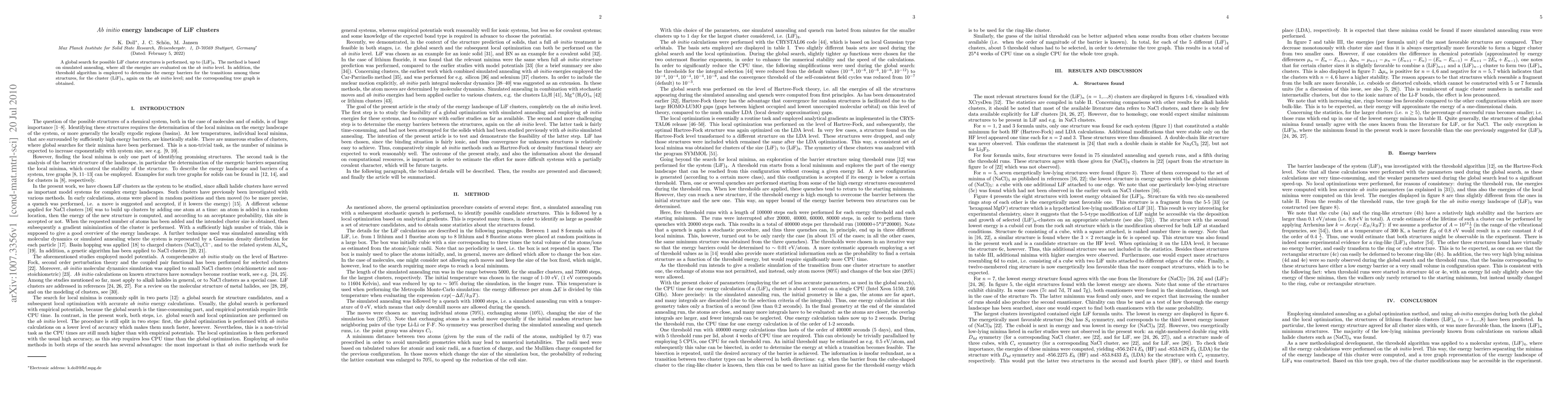 A global search for possible LiF cluster structures is performed using simulated annealing, where all the energies are evaluated on the ab initio level.