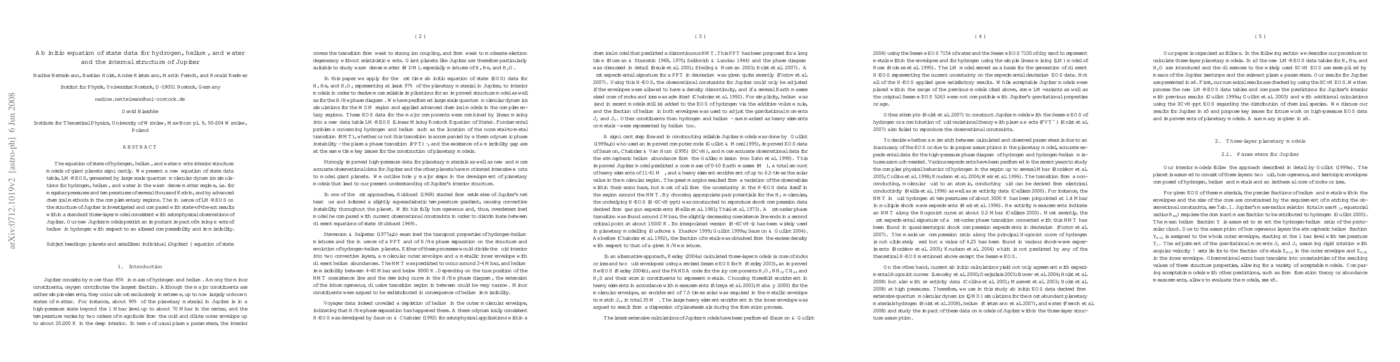 This paper presents new equation of state data for hydrogen, helium, and water derived from quantum simulations and chemical methods, and investigates its impact on Jupiter's internal structure, predicting significant changes in compressibility and immiscibility due to helium mixing in hydrogen.