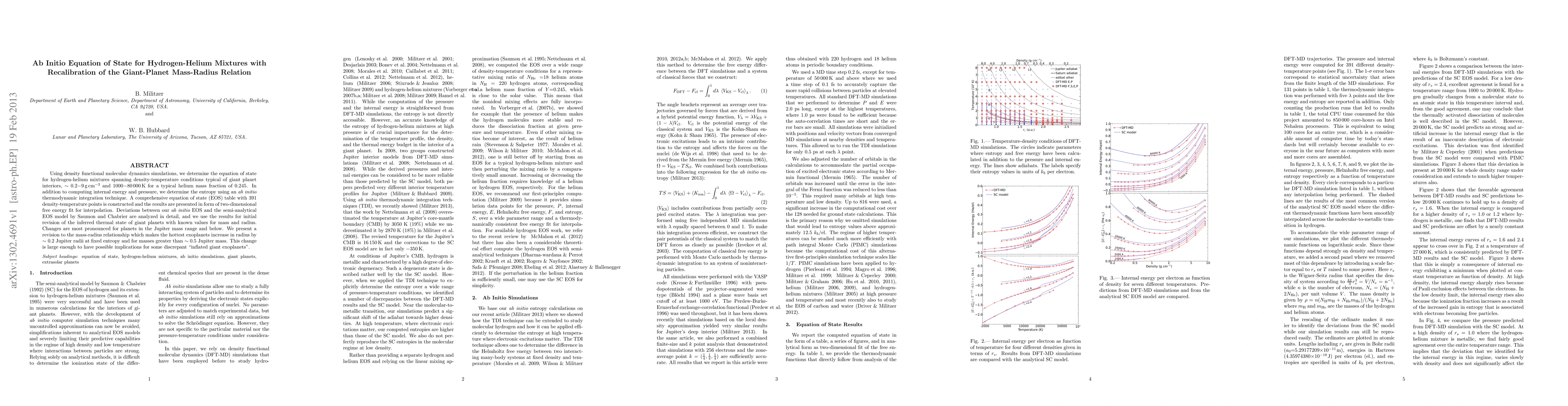 This study uses density functional molecular dynamics to derive an ab initio equation of state for hydrogen-helium mixtures relevant to giant planet interiors, recalibrating the mass-radius relation and suggesting a ~0.2 Jupiter radii increase in the radius of the hottest exoplanets at fixed entropy.