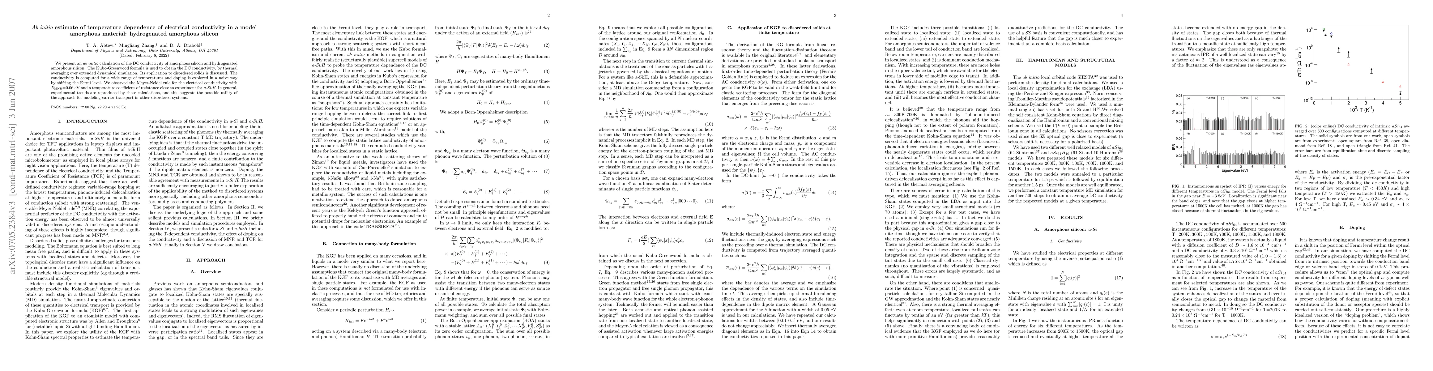This paper presents ab initio calculations of the temperature-dependent DC conductivity in amorphous silicon and hydrogenated amorphous silicon, finding the Meyer-Neldel rule holds with a temperature coefficient of resistance of ~ -2.0% K^-1, and suggests the method's utility for modeling carrier transport in disordered solids.