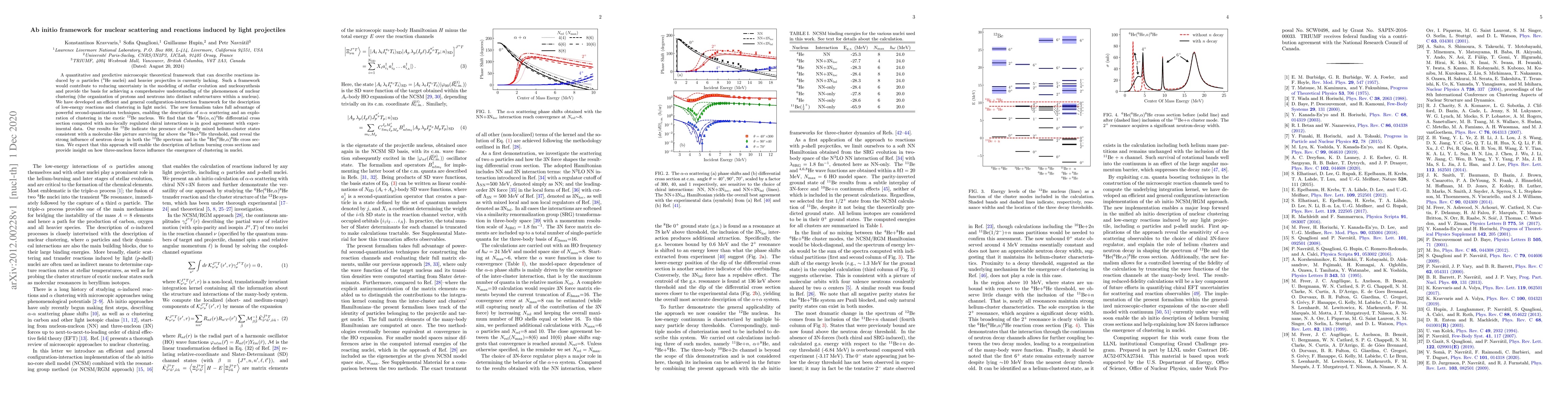 A quantitative and predictive microscopic theoretical framework that can describe reactions induced by $\alpha$ particles ($^4$He nuclei) and heavier projectiles is currently lacking. Such a framework would contribute to reducing uncertainty in the modeling of stellar evolution and nucleosynthesis and provide the basis for achieving a comprehensive understanding of the phenomenon of nuclear clustering (the organization of protons and neutrons into distinct substructures within a nucleus). We have developed an efficient and general configuration-interaction framework for the description of low-energy reactions and clustering in light nuclei. The new formalism takes full advantage of powerful second-quantization techniques, enabling the description of $\alpha$-$\alpha$ scattering and an exploration of clustering in the exotic $^{12}$Be nucleus. We find that the $^4$He($\alpha$, $\alpha$)$^4$He differential cross section computed with non-locally regulated chiral interactions is in good agreement with experimental data. Our results for $^{12}$Be indicate the presence of strongly mixed helium-cluster states consistent with a molecular-like picture surviving far above the $^6$He+$^6$He threshold, and reveal the strong influence of neutron decay in both the $^{12}$Be spectrum and in the $^6$He($^6$He,$\alpha$)$^8$He cross section. We expect that this approach will enable the description of helium burning cross sections and provide insight on how three-nucleon forces influence the emergence of clustering in nuclei.